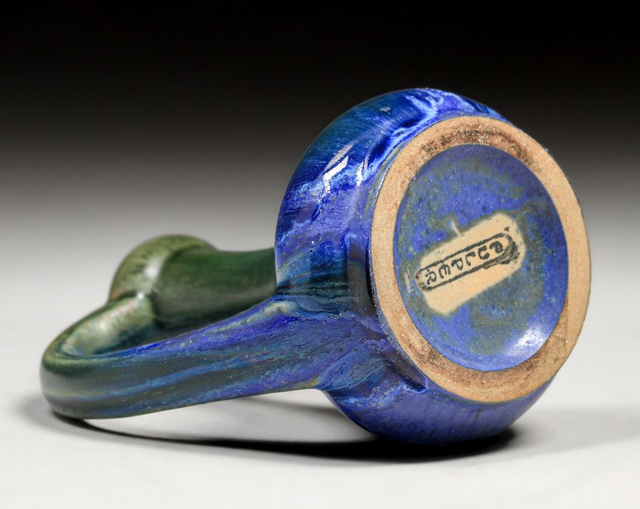 Fulper Pottery One-Handled Cobalt Blue Candlestick c1910s. Signed. Perfect condition. 4.5″h x 3.5″w SOLD