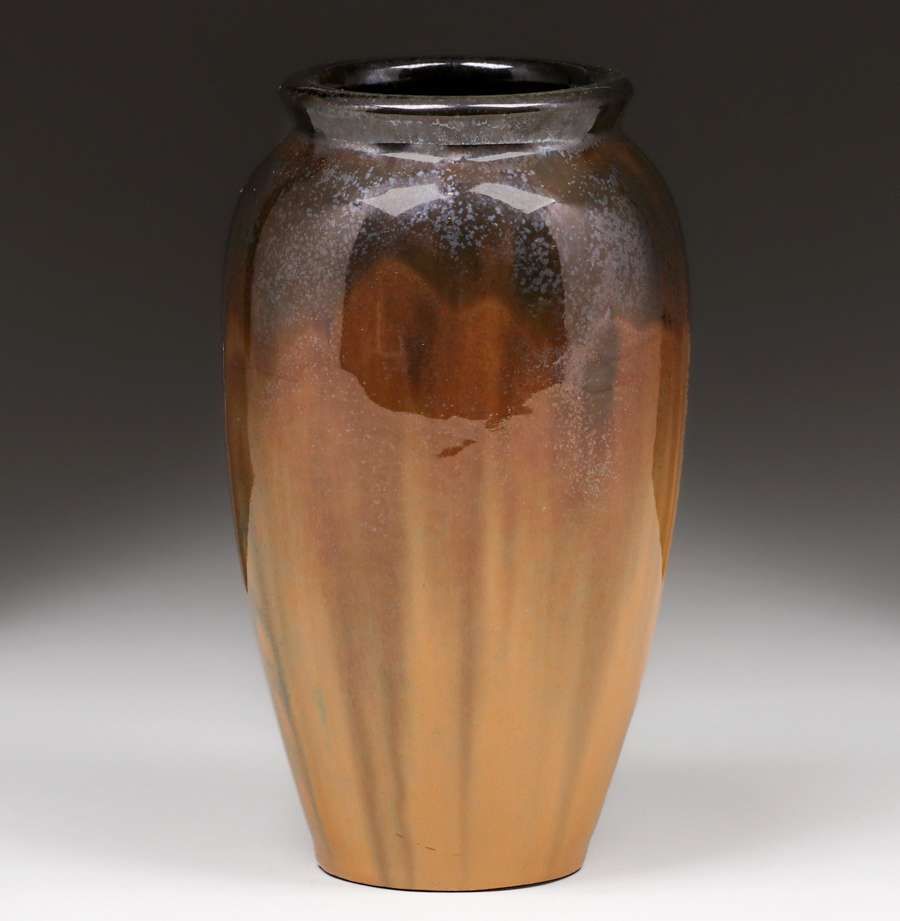 Fulper Pottery Orange Flambe Vase c1910s. Signed. Perfect condition. 6.5"h x 3.5"d SOLD