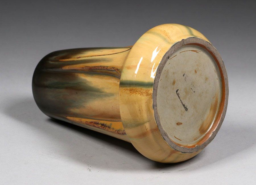 - Fulper Pottery Orange & Mirror Black Flambe Buttress Vase c1910