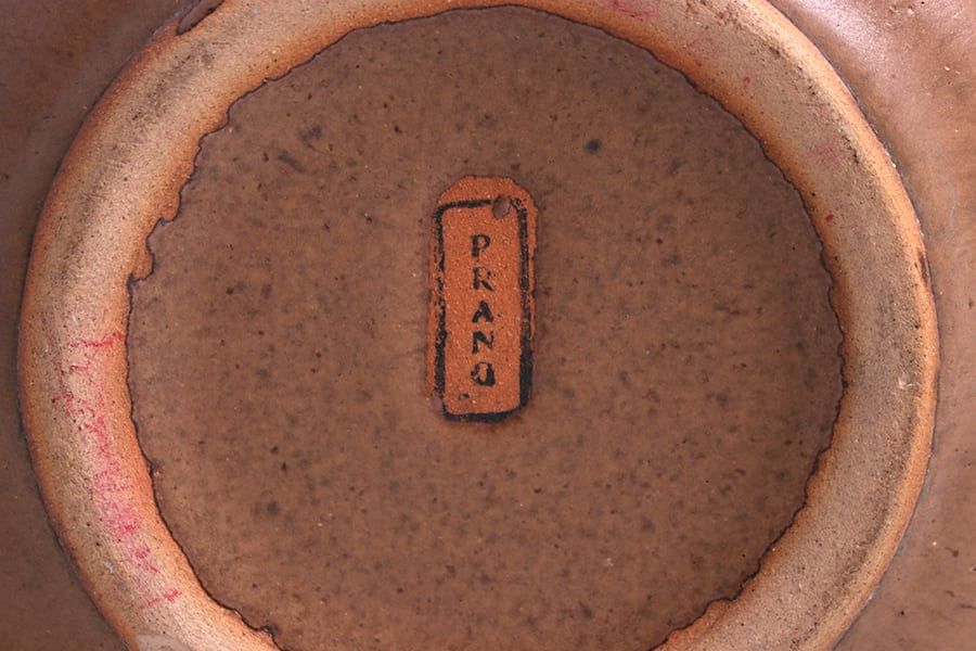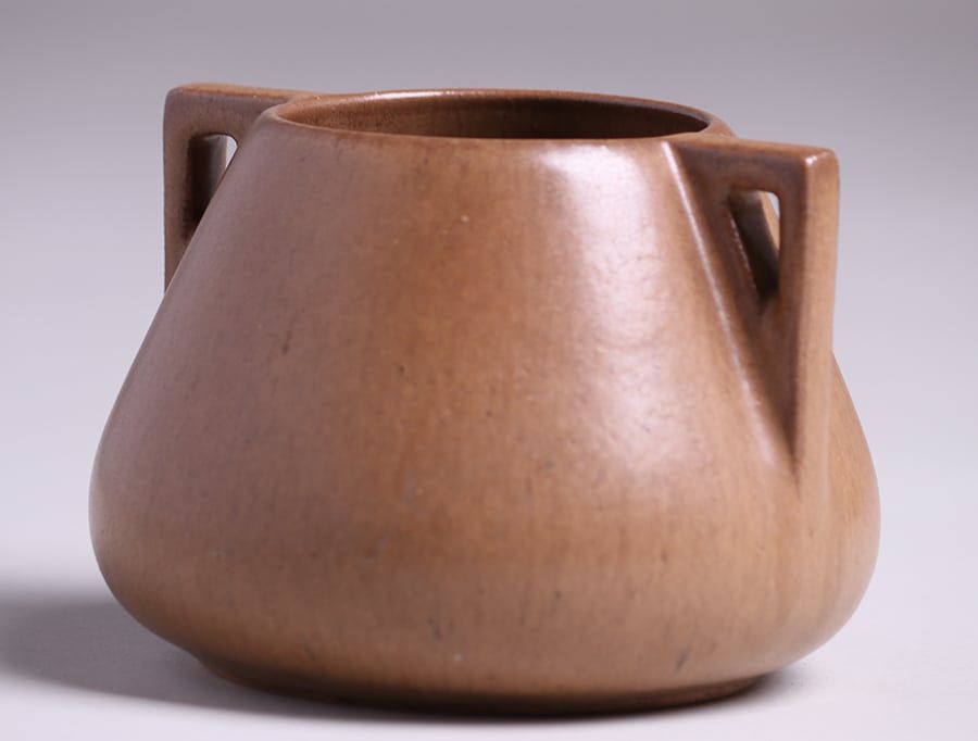 Fulper Pottery - Prang two handled matte brown vase. Perfect condition. Signed with early Prang mark. 5"h x 6"d SOLD