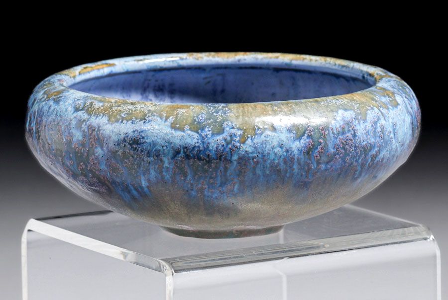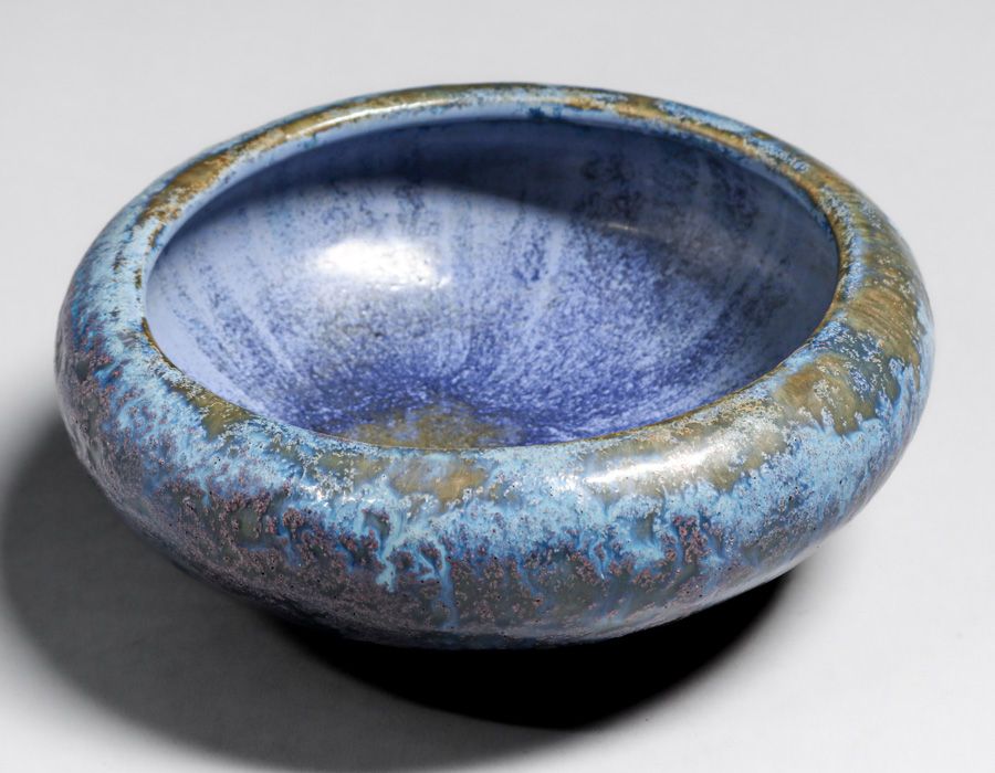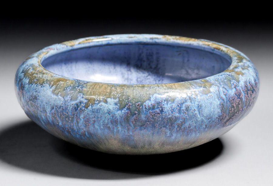 - Fulper Pottery Purple & Blue Semi-Matte Flambe Bowl c1910s