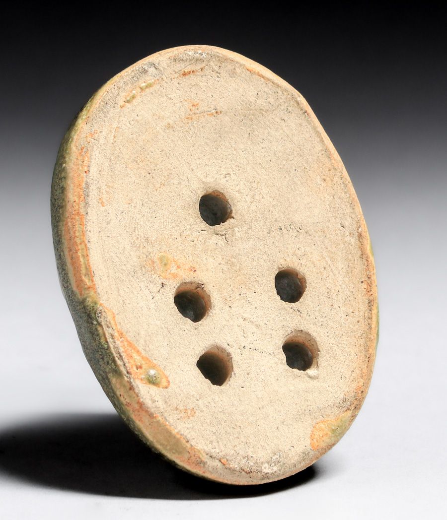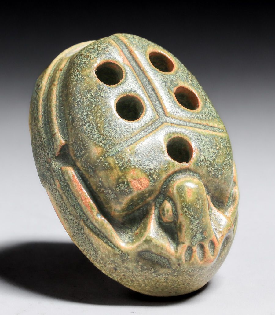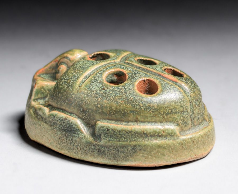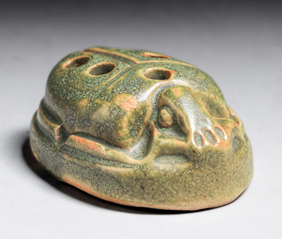 Fulper Pottery Scarab Flower Frog c1910s. Unsigned. Perfect condition. 3.25" x 2.25"w x 1"h SOLD