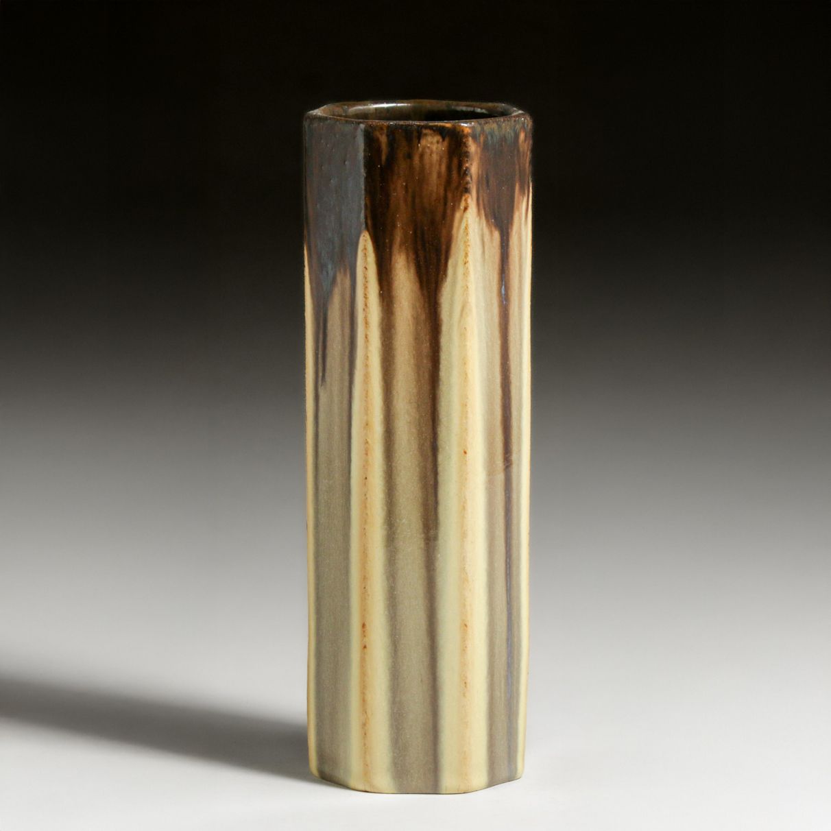 Fulper Pottery Seven-Sided Vase c1910s. Signed. Perfect condition. 9"h x 2.75"d
