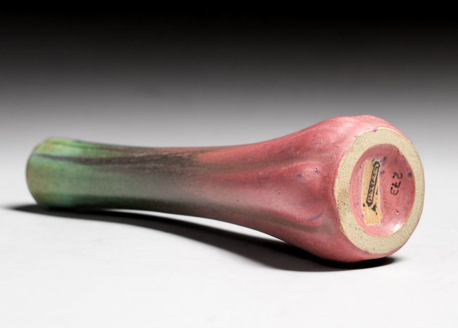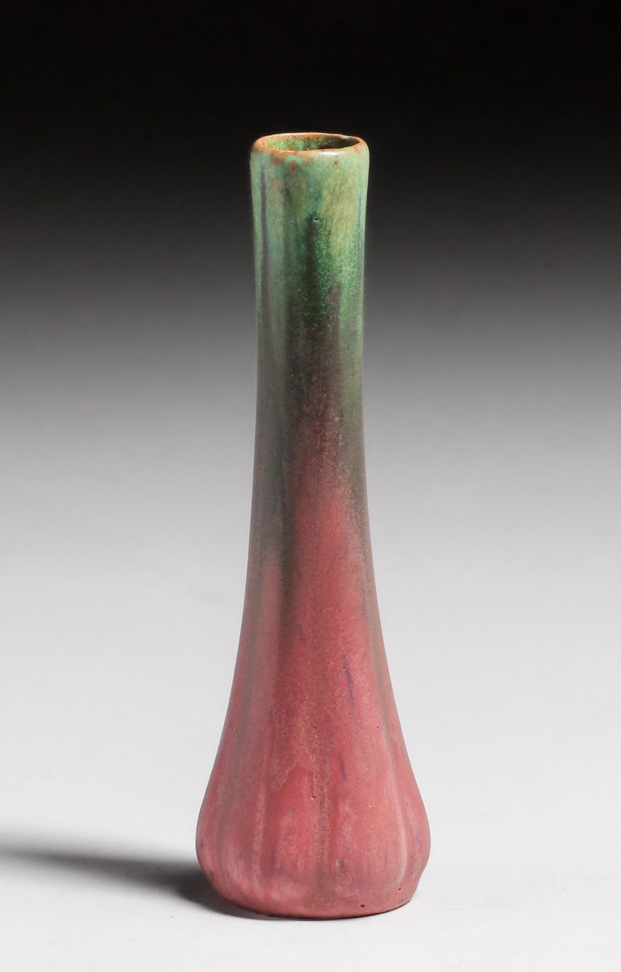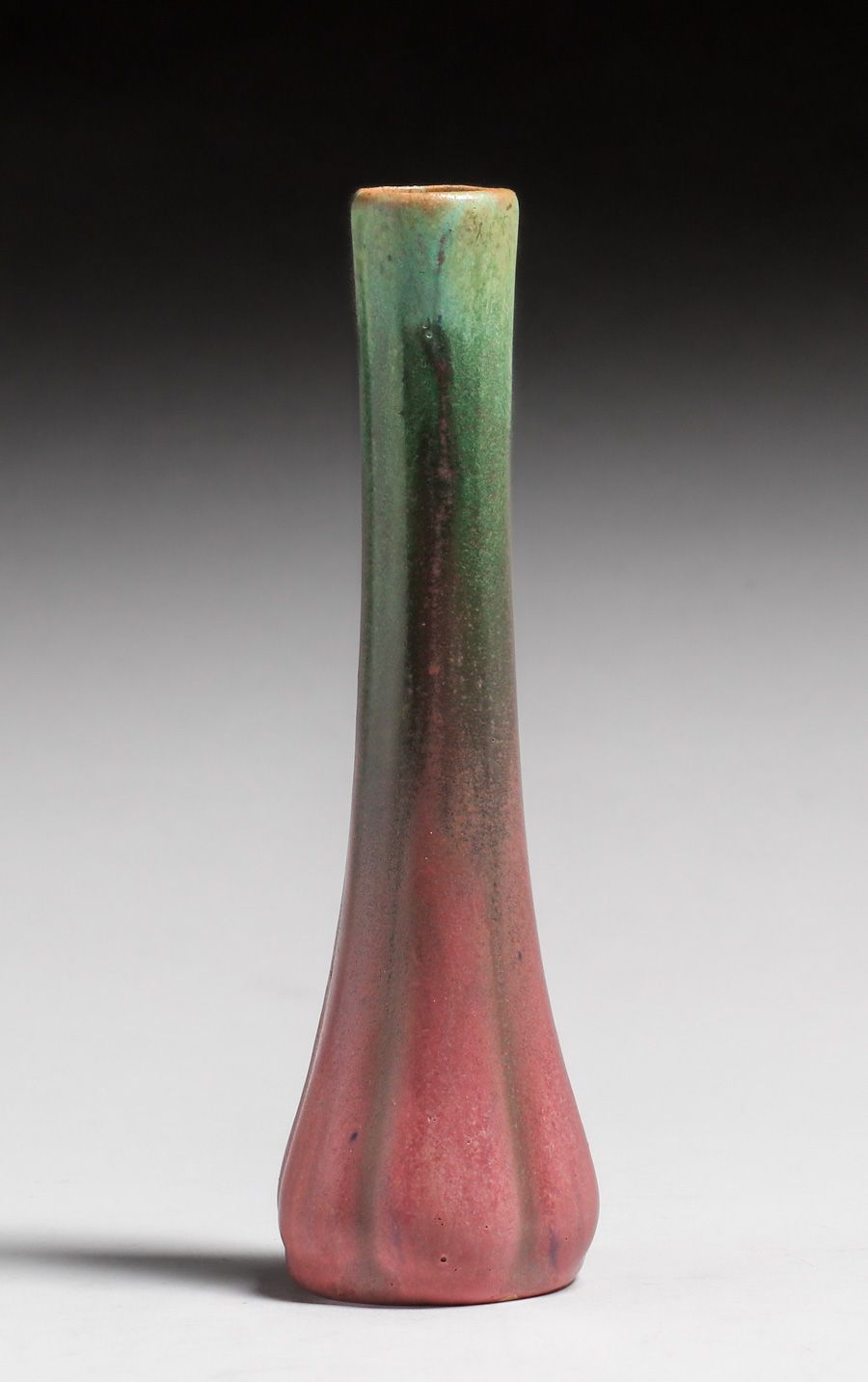 - Fulper Pottery Six-Sided Chinese Green & Pink Flambe Vase c1917-1920
