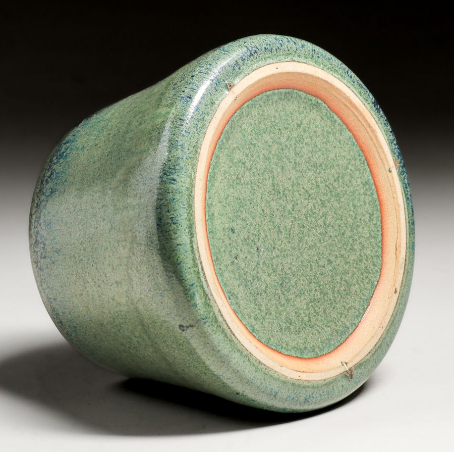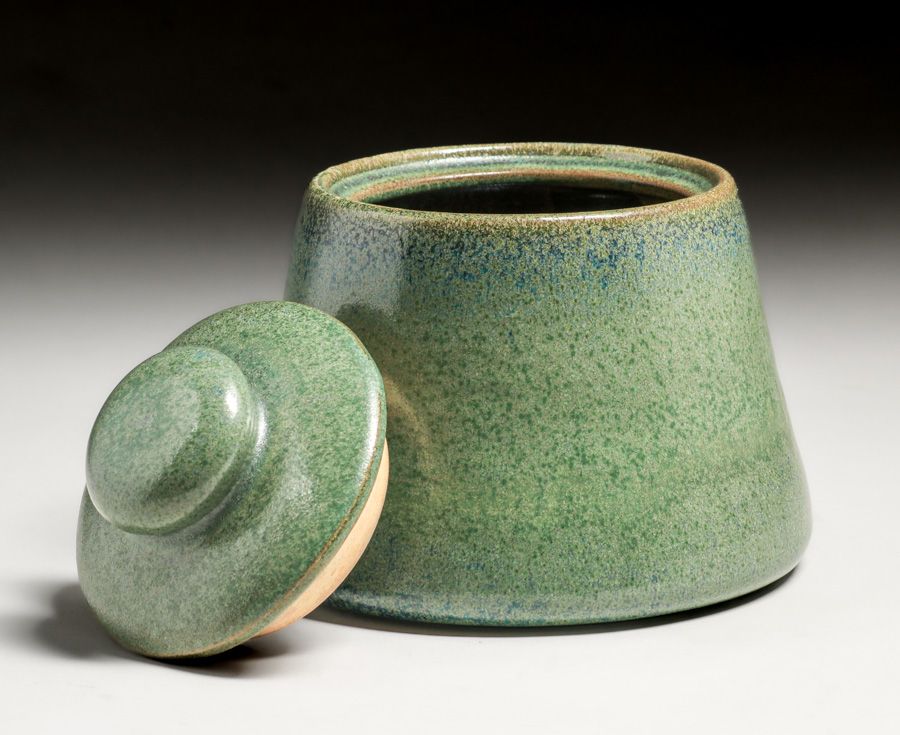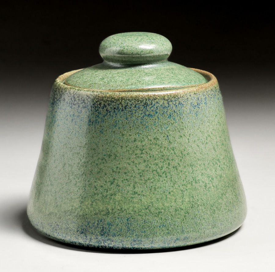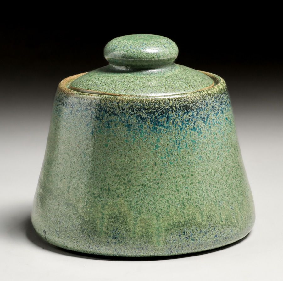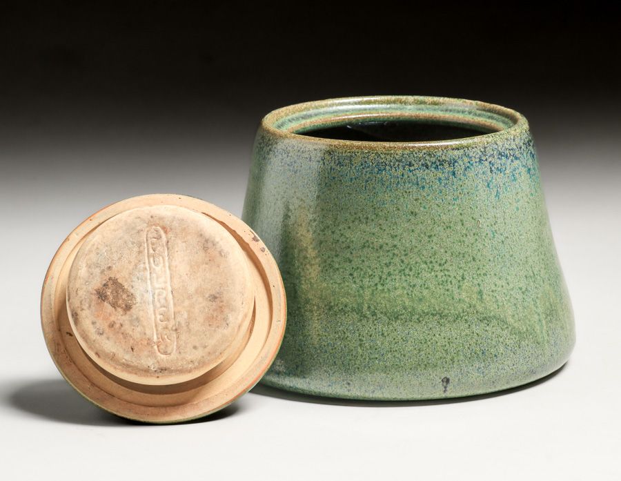 - Fulper Pottery Speckled Matte Green Flambe Humidor c1910s