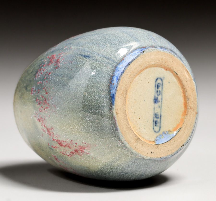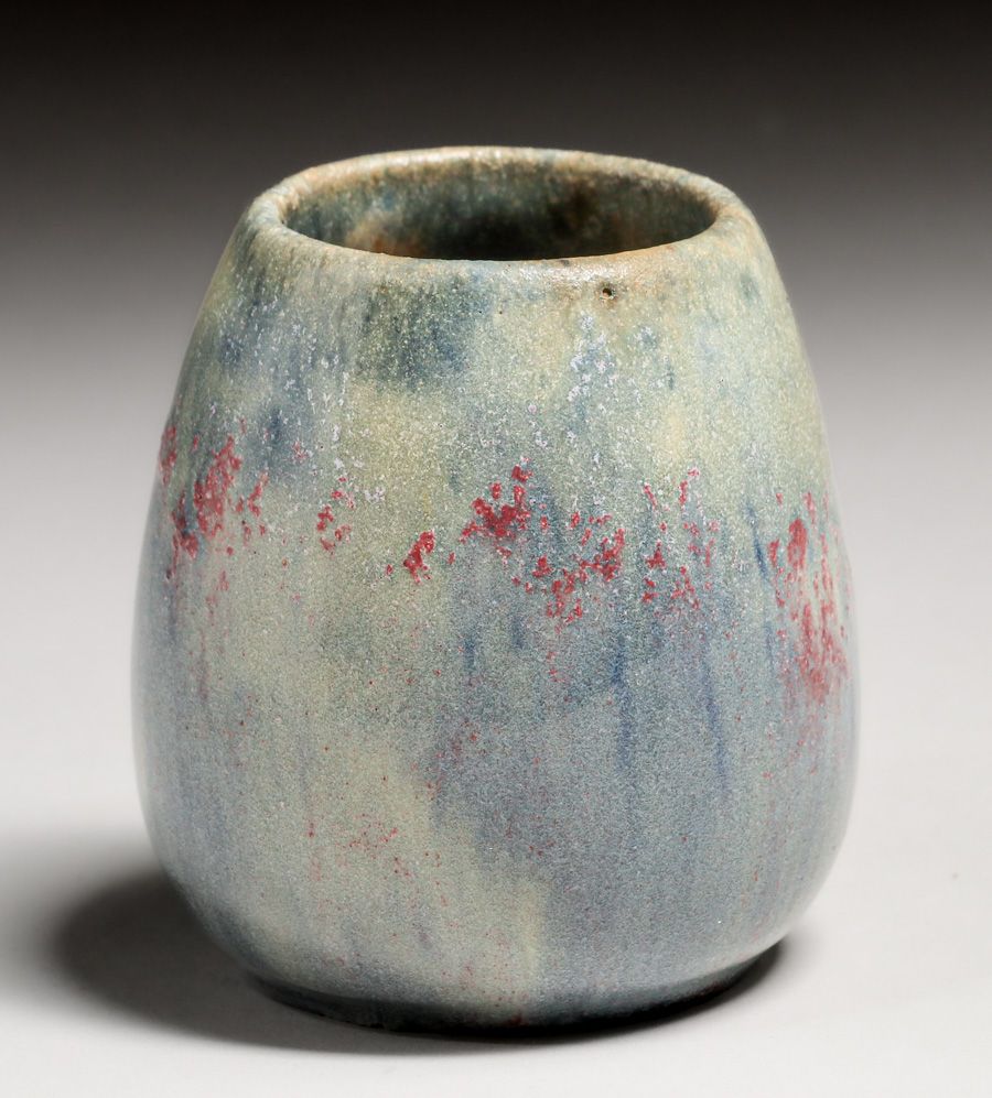 Fulper Pottery Speckled Wisteria Grayish Blue Glaze Vase c1917-1920. Signed. Perfect condition. 3.5"h x 3"d SOLD
