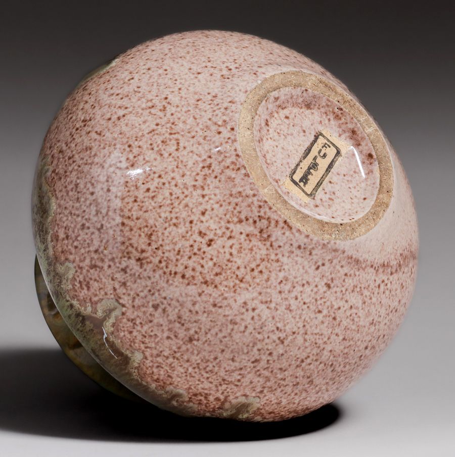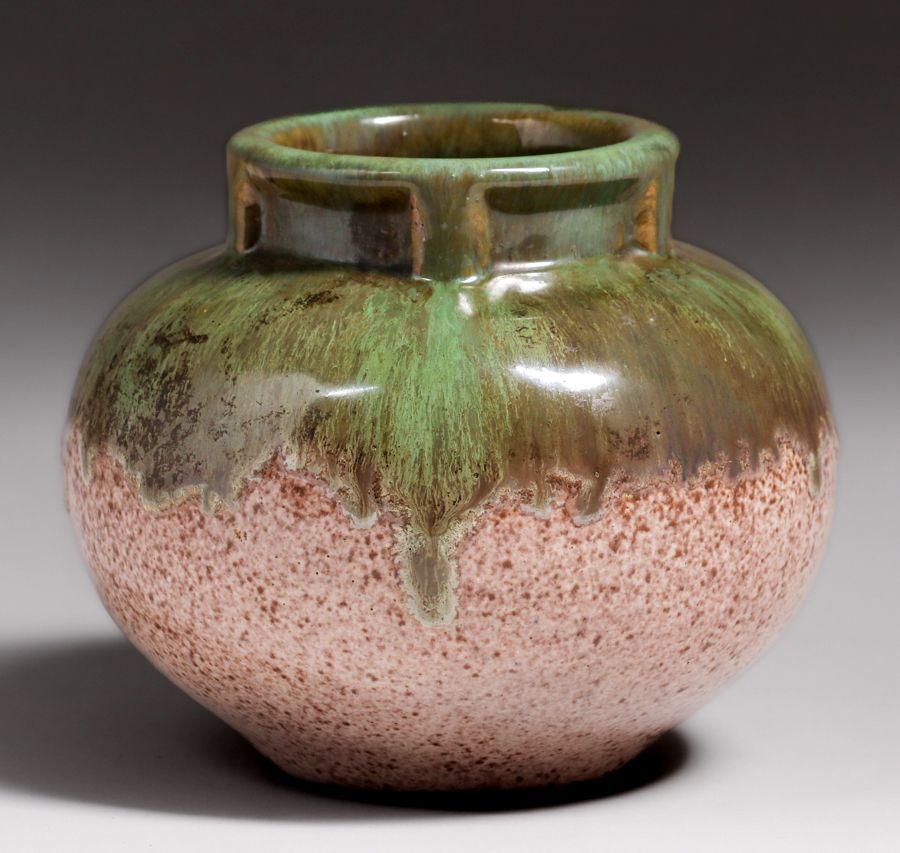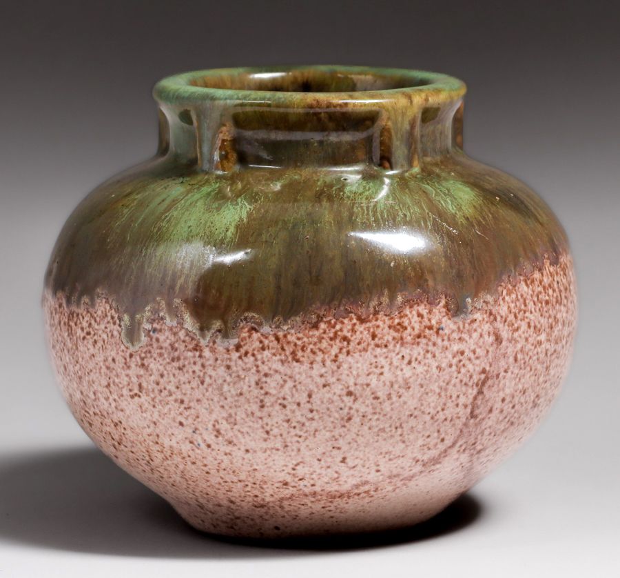 - Fulper Pottery Spherical Green Drip Vase c1910s