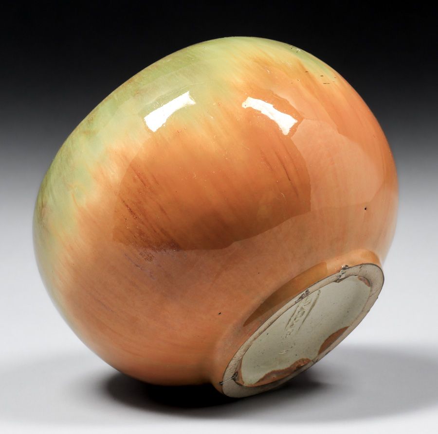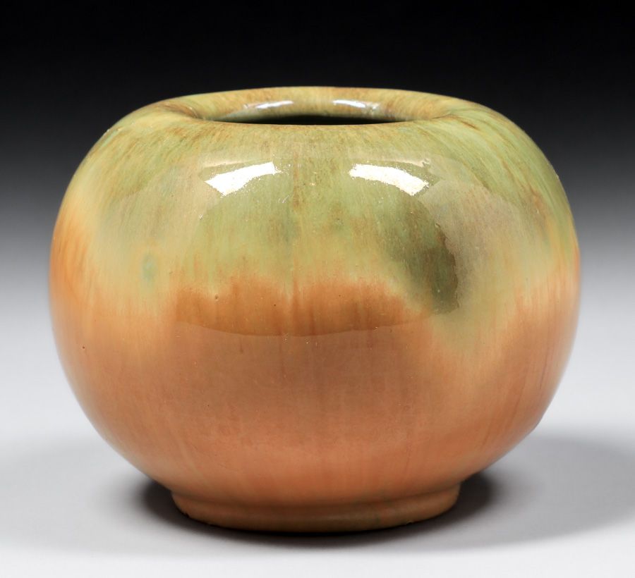 Fulper Pottery Spherical Vase c1910s. Signed. A few glaze bubbles, otherwise perfect condition. 5.5"h x 6.5"d SOLD