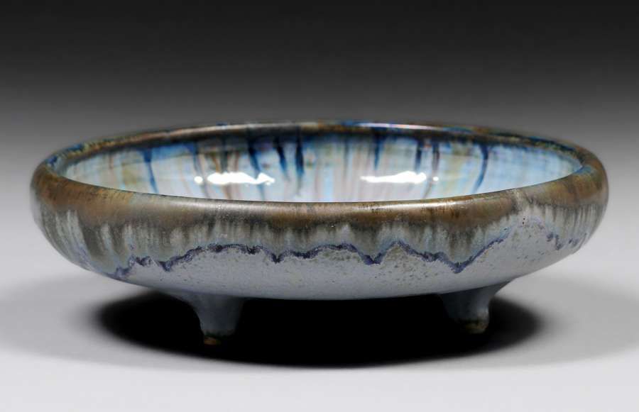 - Fulper Pottery Three-Footed Blue Flambe Bowl c1910