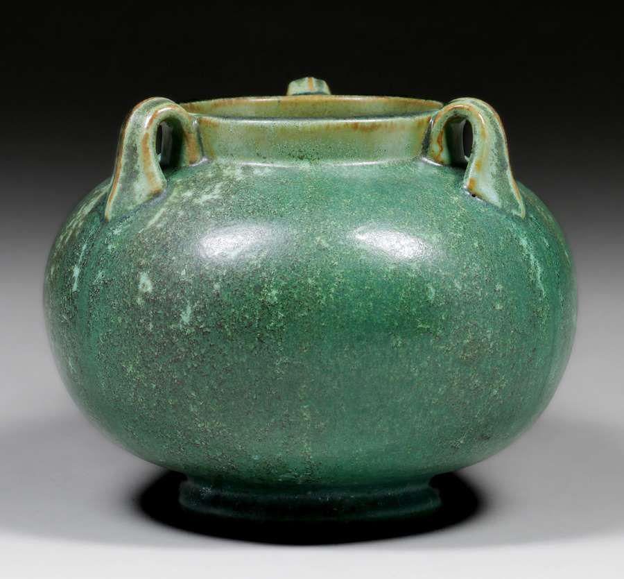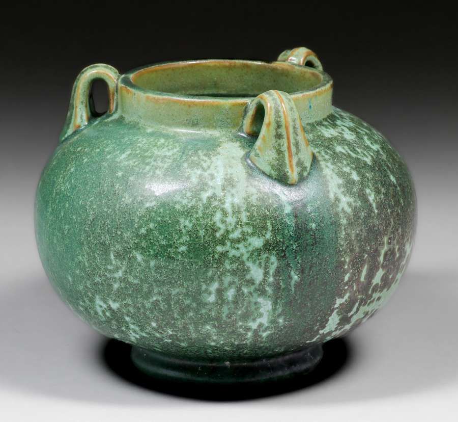 - Fulper Pottery Three-Handled Leopardskin Vase c1910