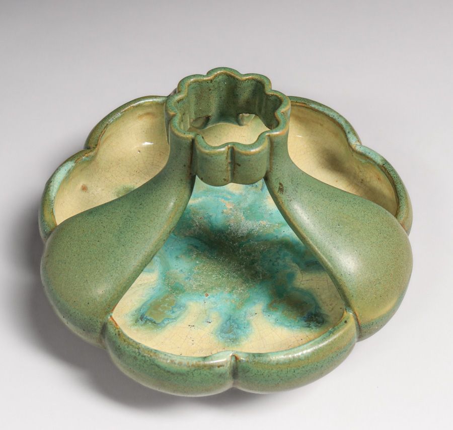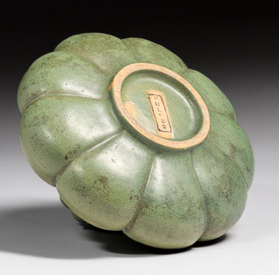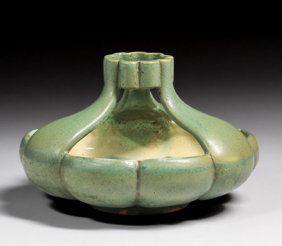 - Fulper Pottery Three-Handled Matte Green Vaz-Bowl c1910s