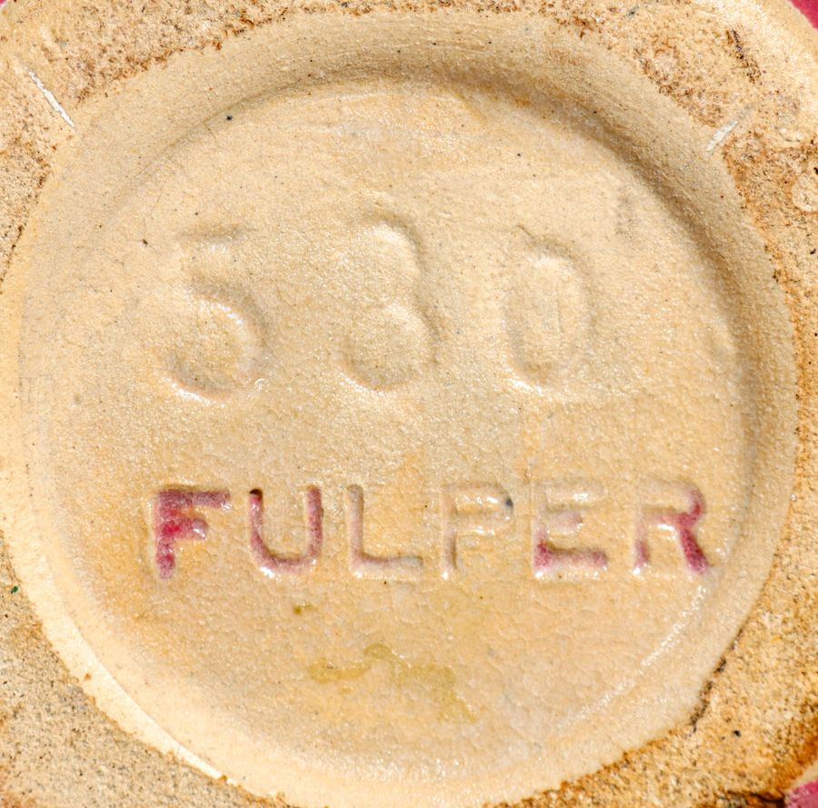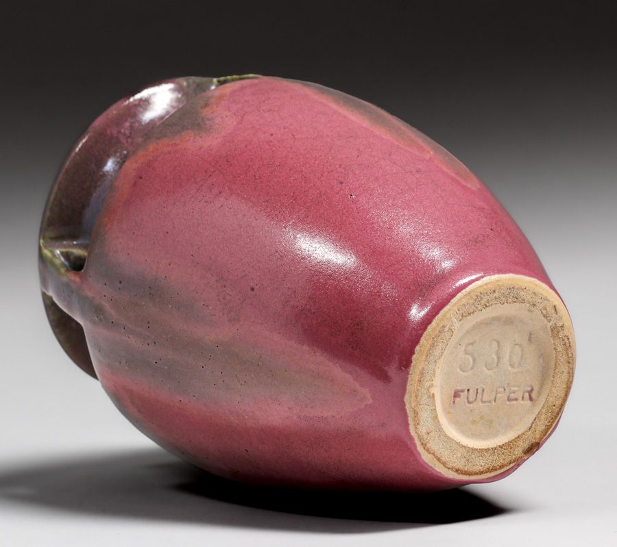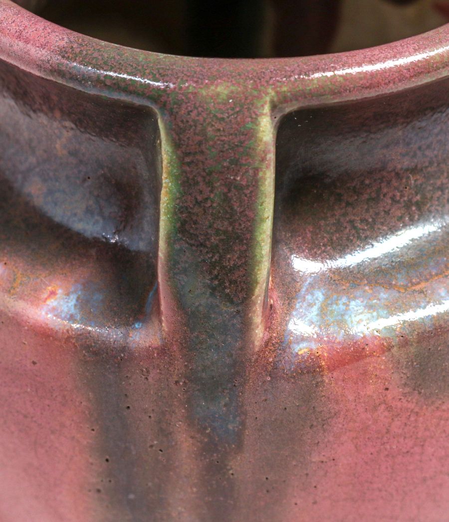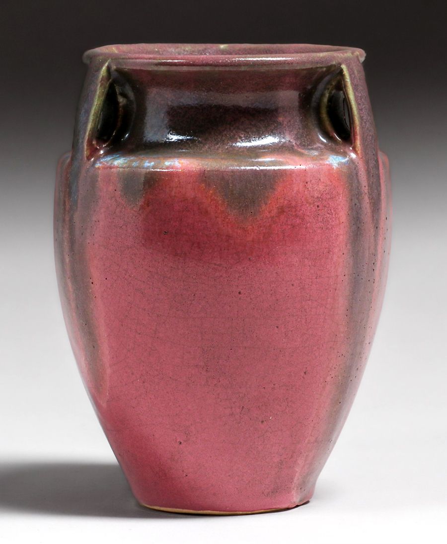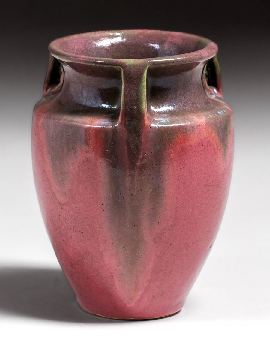 - Fulper Pottery Three-Handled Pink & Green Semi-Matte Vase c1910s