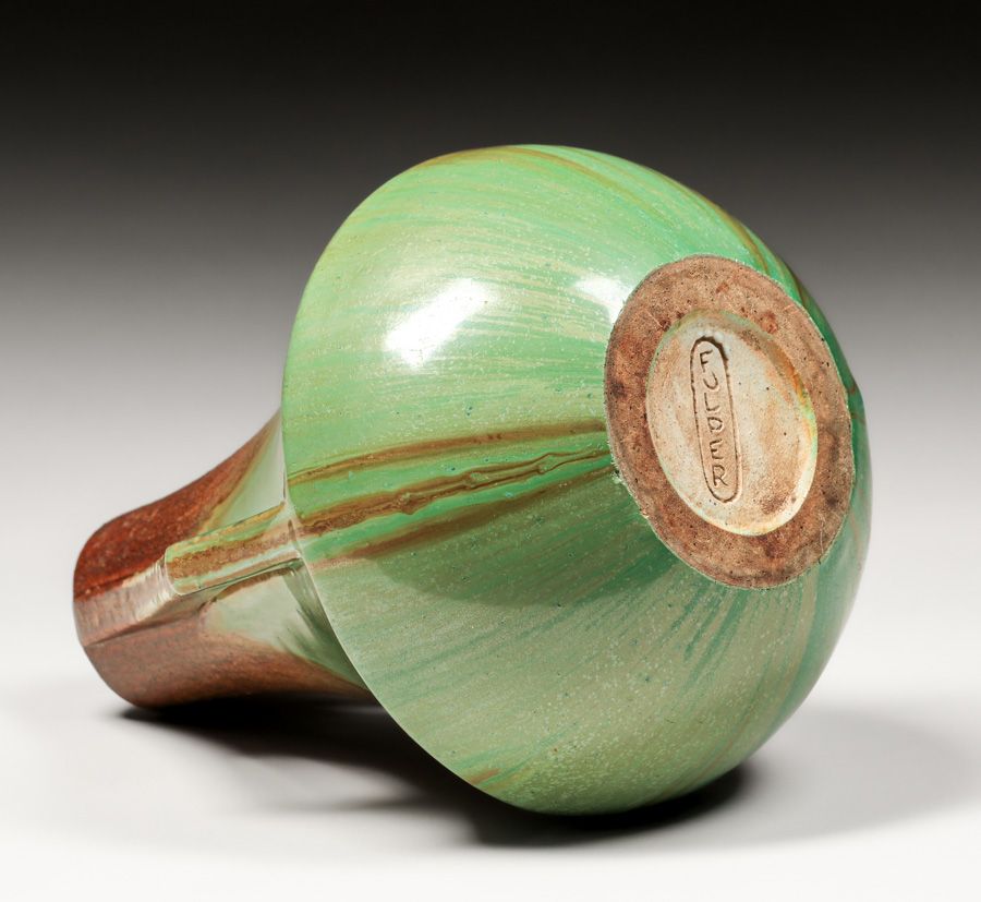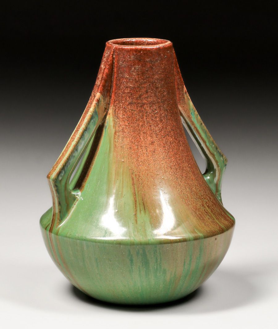 - Fulper Pottery Two-Handle Copperdust Green Flambe Vase c1910s