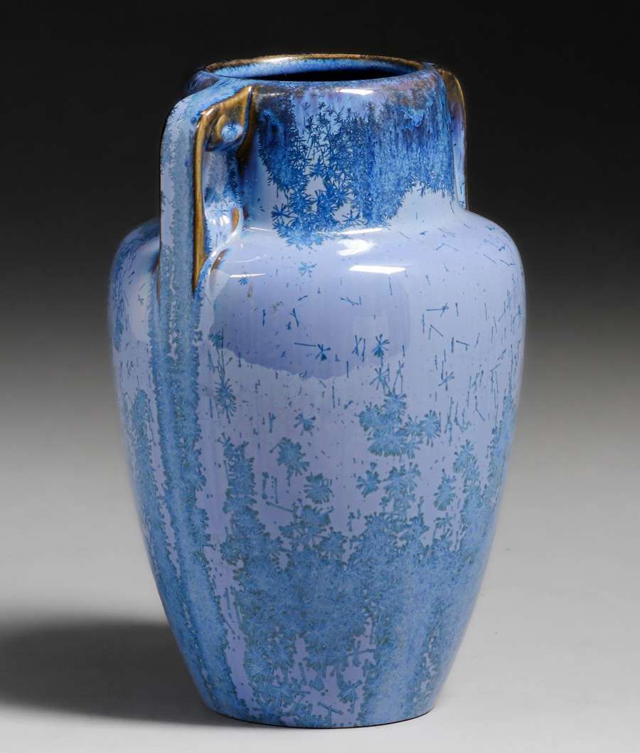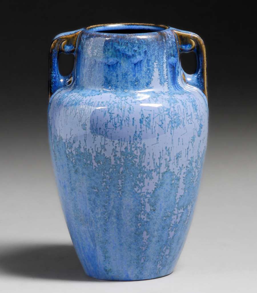 - Fulper Pottery Two-Handled Blue Crystalline Vase c1910