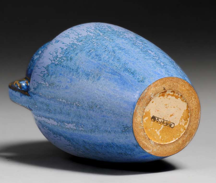 Fulper Pottery Two-Handled Blue Crystalline Vase c1910. Signed. Perfect condition. 9.5″h x 5.25″d SOLD