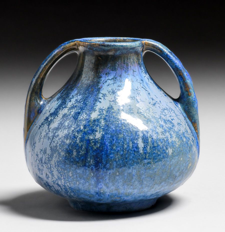 - Fulper Pottery Two-Handled Blue Crystalline Vase c1917-1920