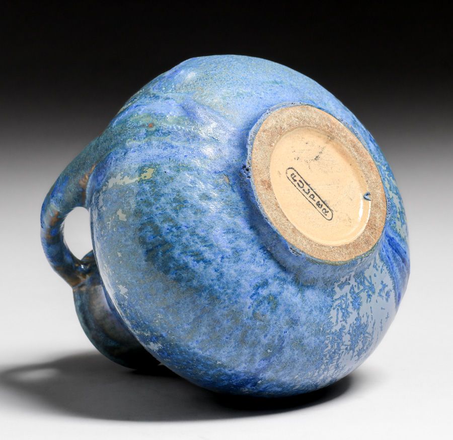 Fulper Pottery Two-Handled Blue Crystalline Vase c1917-1920. Signed. Perfect condition. 6"h x 5.75"d SOLD