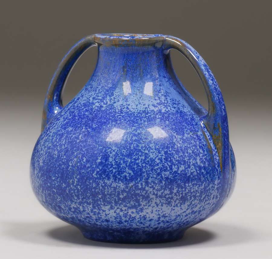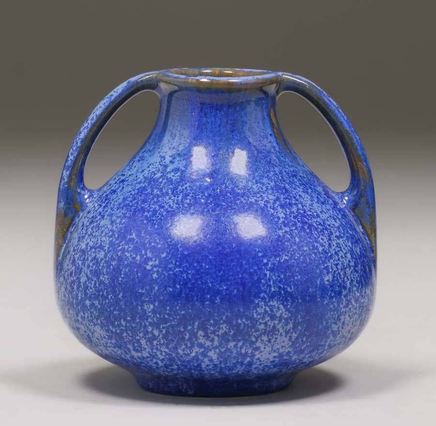- Fulper Pottery Two-Handled Blue Crystalline Vase c1920