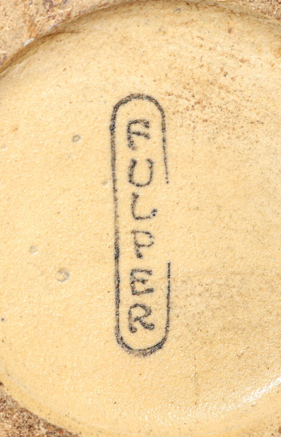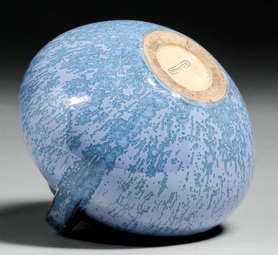 Fulper Pottery Two-Handled Blue Snowflake Crystalline Vase c1910s. Signed. Perfect condition. 7.25"d x 6.25"h SOLD