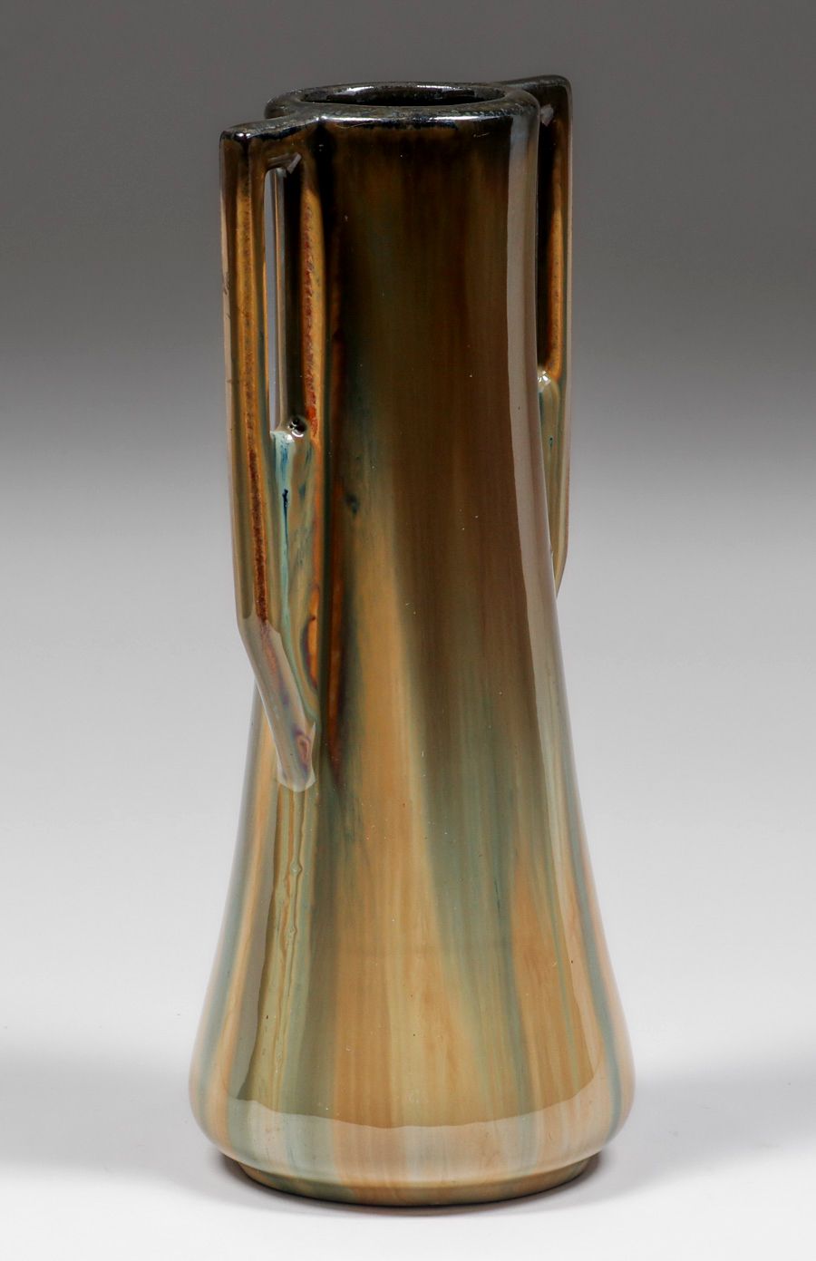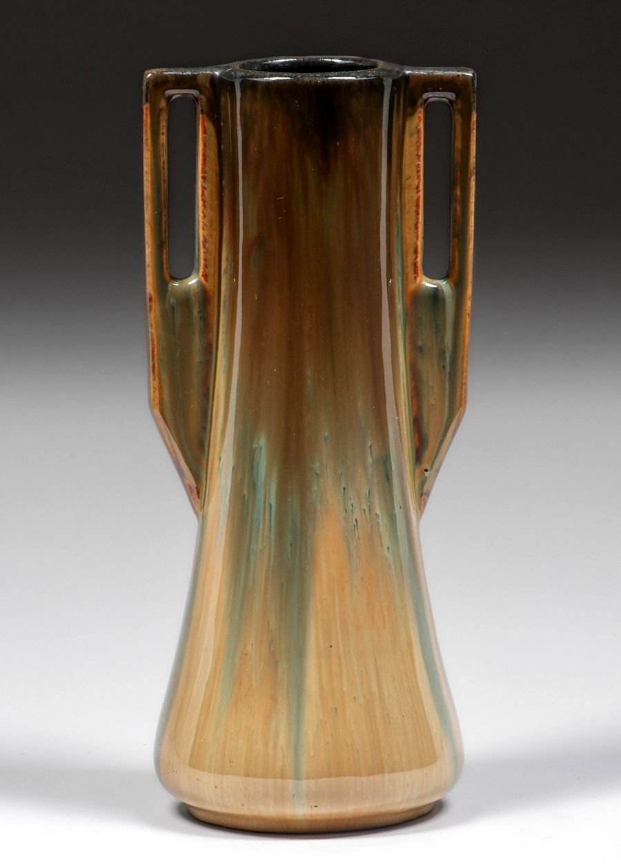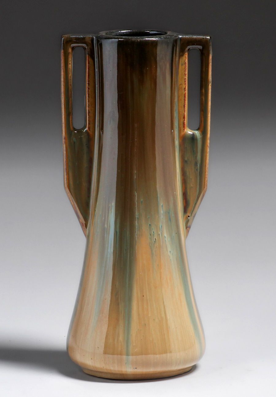 - Fulper Pottery Two-Handled Cat's Eye & Mirror Black Vase c1910s