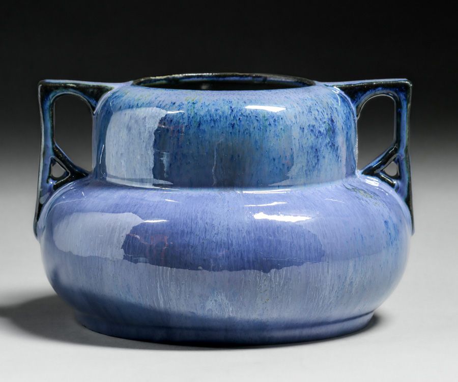 Fulper Pottery Two-Handled Chinese Blue Vase c1910. Signed. Perfect condition. 9.75"w x 6"h SOLD