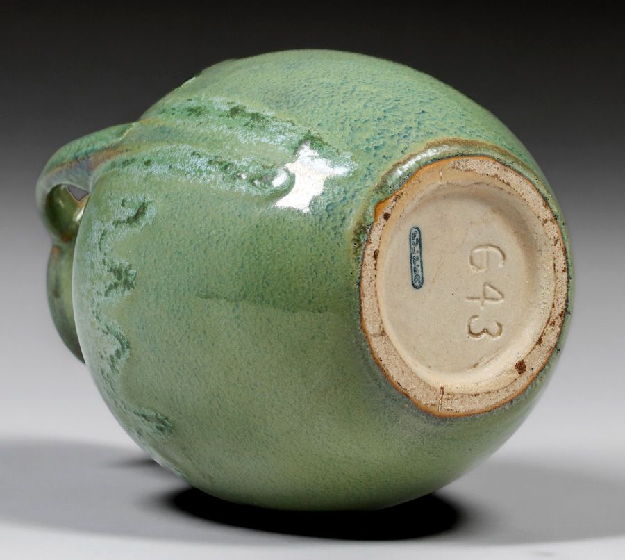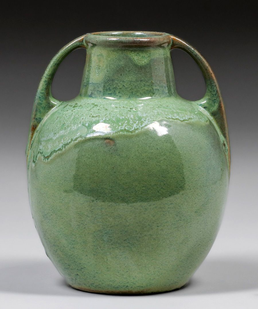 - Fulper Pottery Two-Handled Green Drip Vase c1910s