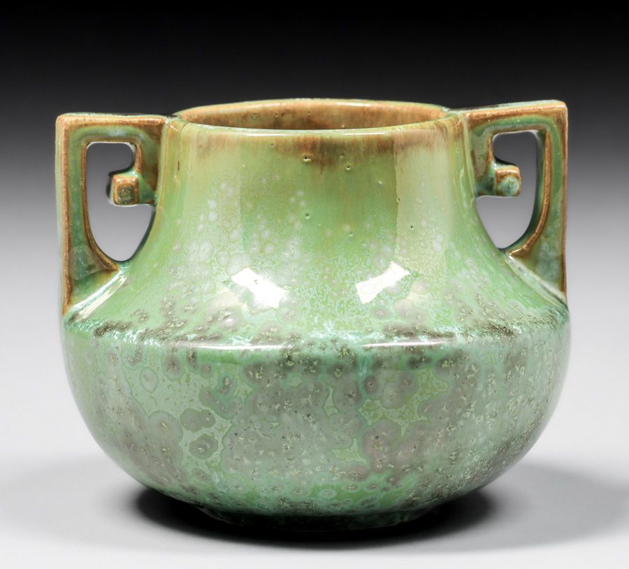 - Fulper Pottery Two-Handled Leopardskin Vase c1910s