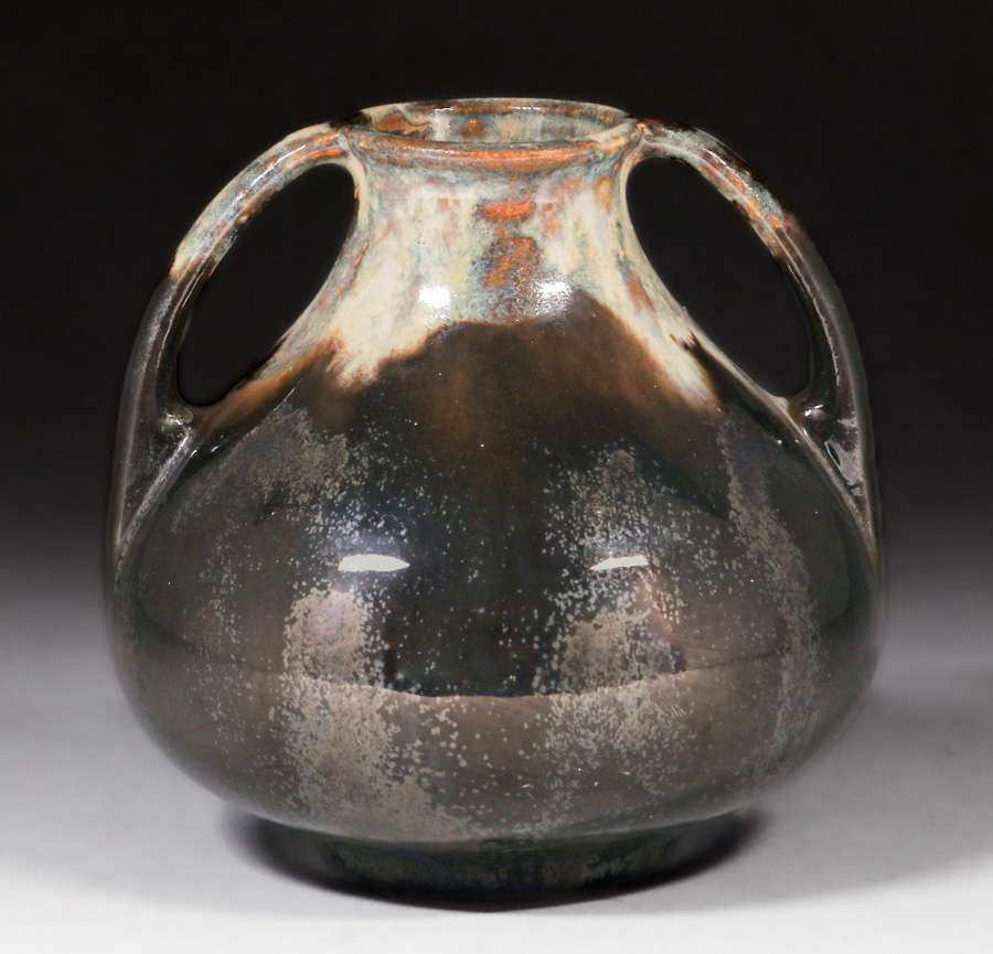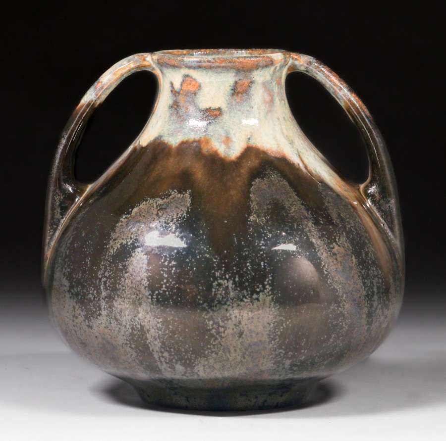 - Fulper Pottery Two-Handled Mottled Ivory Mirror Black Vase c1910s