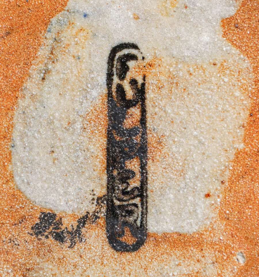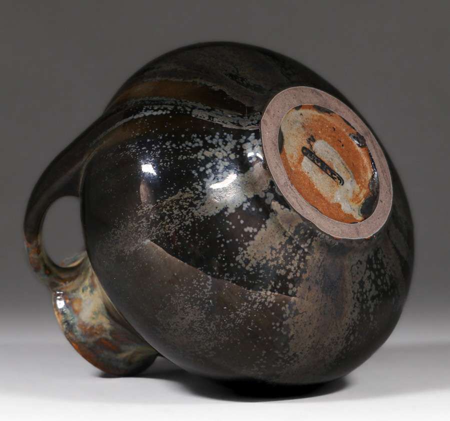 Fulper Pottery Two-Handled Mottled Ivory Mirror Black Vase c1910s. Signed. Perfect condition. 6.25″h x 5.75″d SOLD