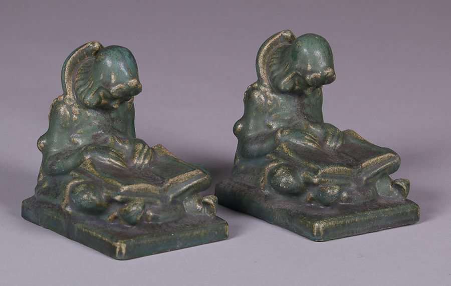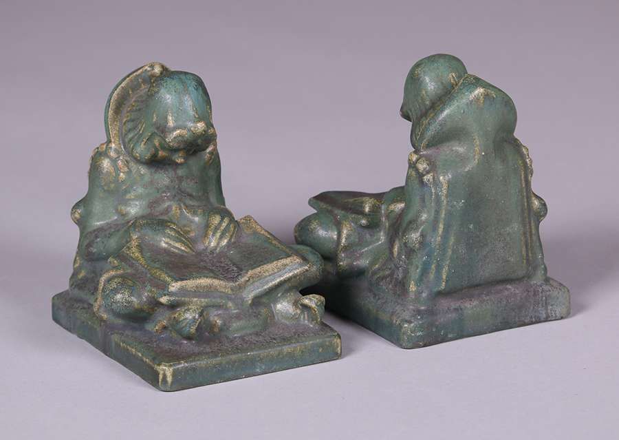 - Fulper "Sleepy-Reader" Matte Green Bookends