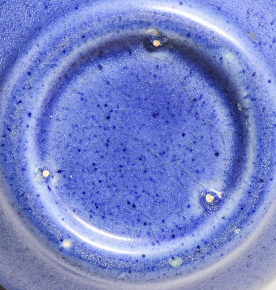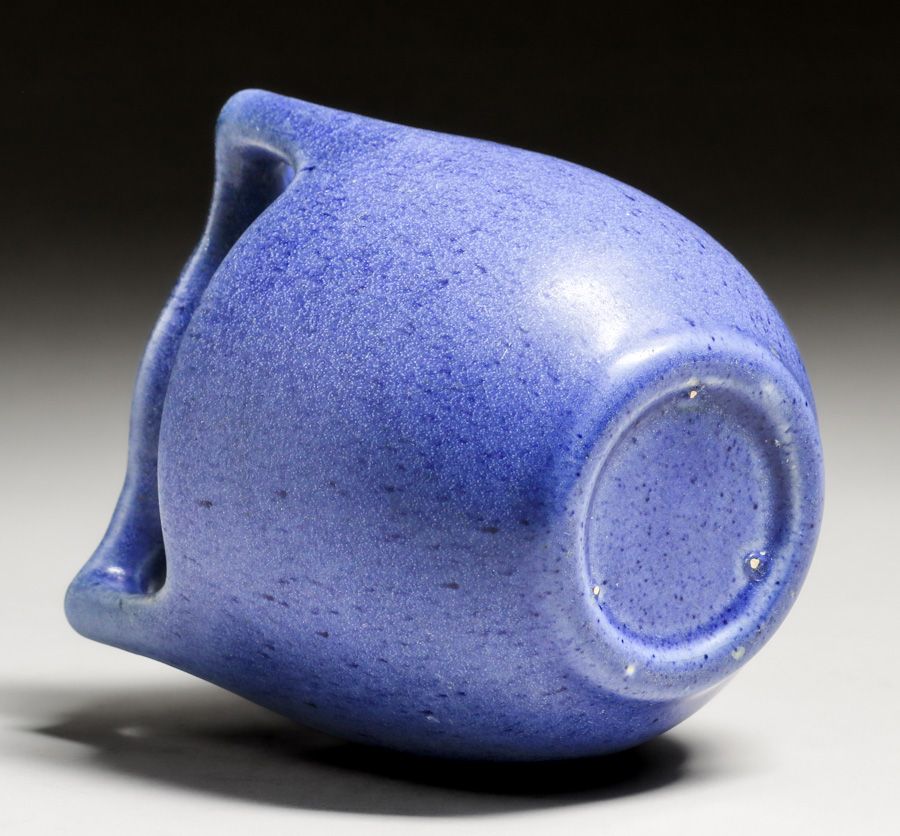 Fulper Stangl Pottery Matte Blue Three-Handled Vase c1920s. Unsigned. Invisible professional restoration to small rim chip, otherwise perfect condition. 5"h x 4.75"d SOLD