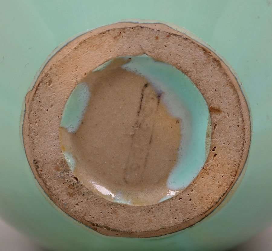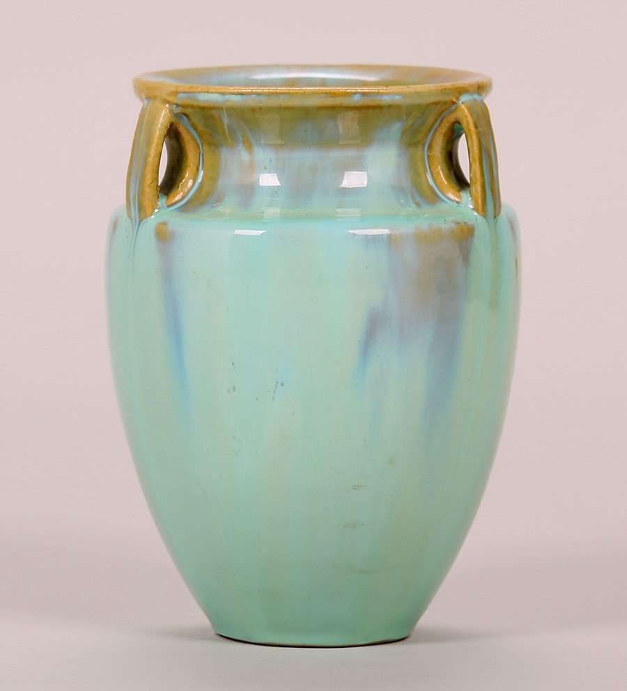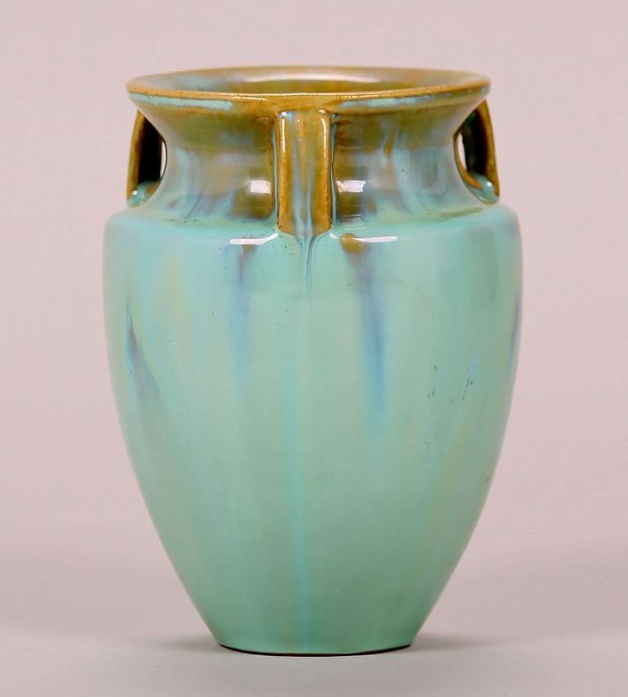Fulper Pottery three-handled vase with a light green glaze. Signed. Perfect condition. 6.75"h x 4.75"d SOLD