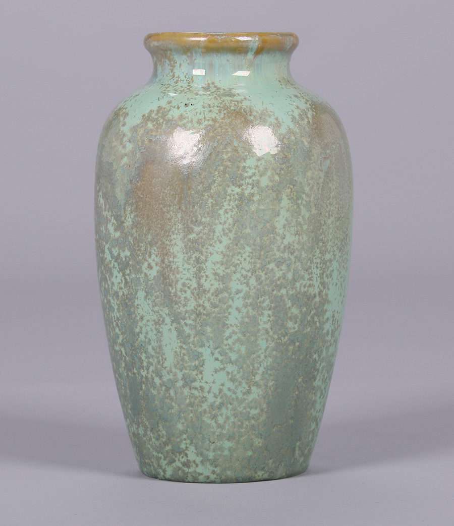 Fulper Pottery vase with a light cucumber green glaze. A few minor glaze bubbles otherwise perfect condition. 11.5"h x 6"d SOLD