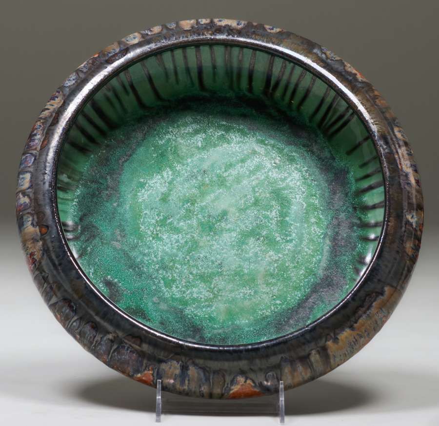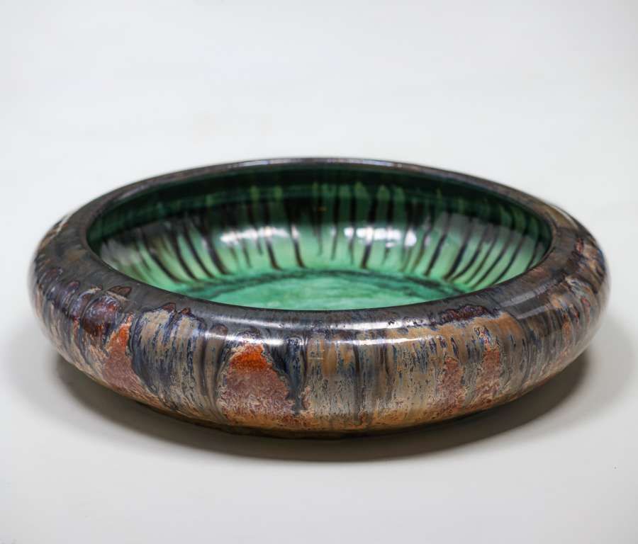 Large Fulper Pottery Fruit Bowl c1910s. Signed. Perfect condition. 13"d x 3"h SOLD