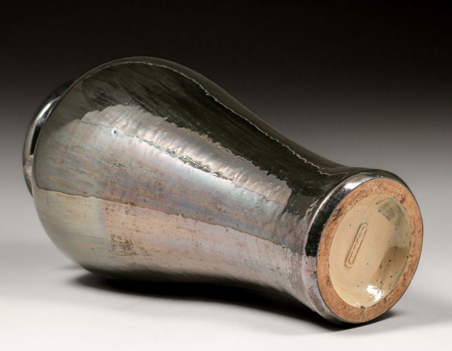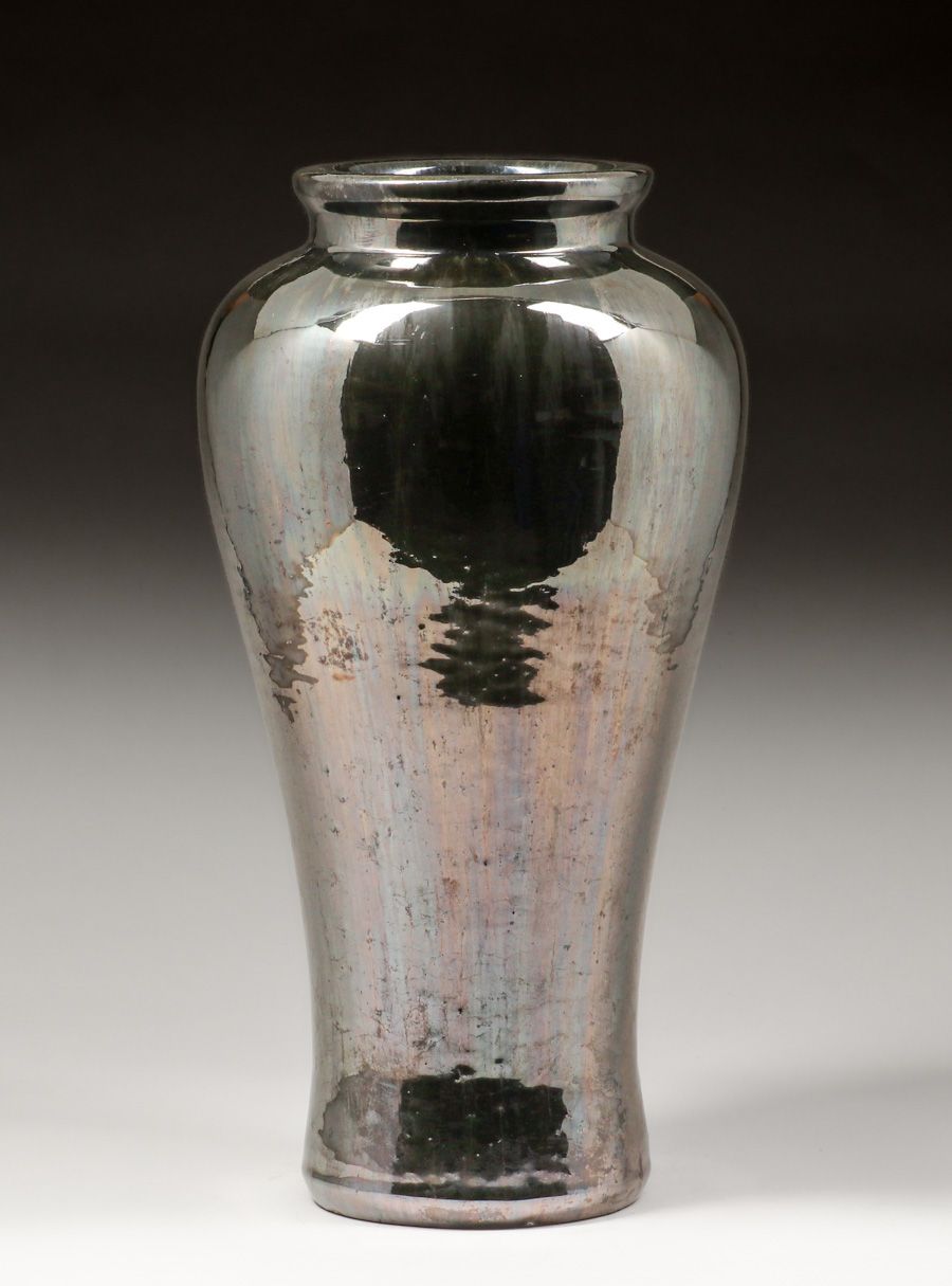 Large Fulper Pottery Mirror Black Vase c1910. Signed. Perfect condition. 17″h x 9″d SOLD