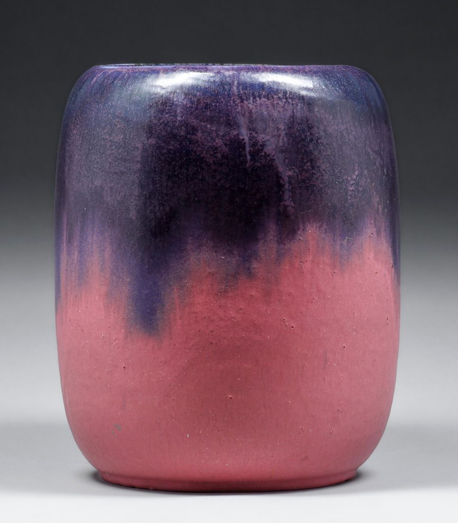 - Large Fulper Pottery Wisteria Purple & Matte Pink Vase c1910