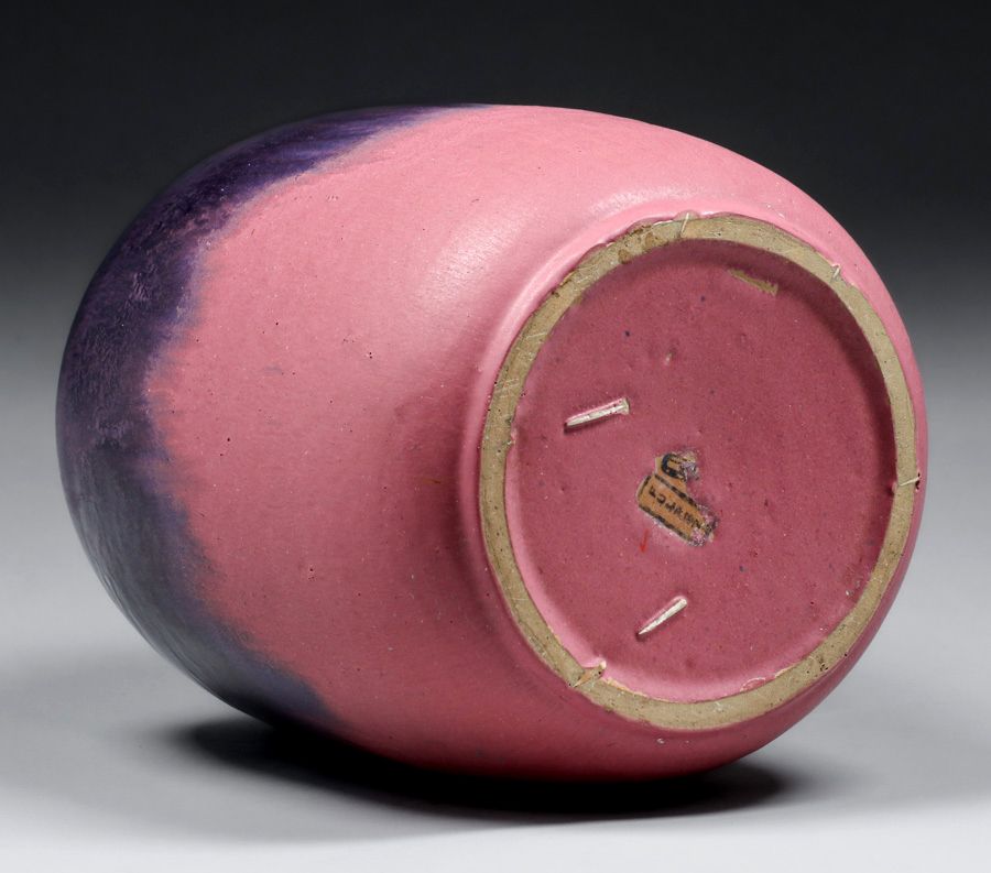 Large Fulper Pottery Wisteria Purple & Matte Pink Vase c1910. Signed with unusual extra letter “Q” next to Fulper mark. Perfect condition. 10.5"h x 8.25"d SOLD