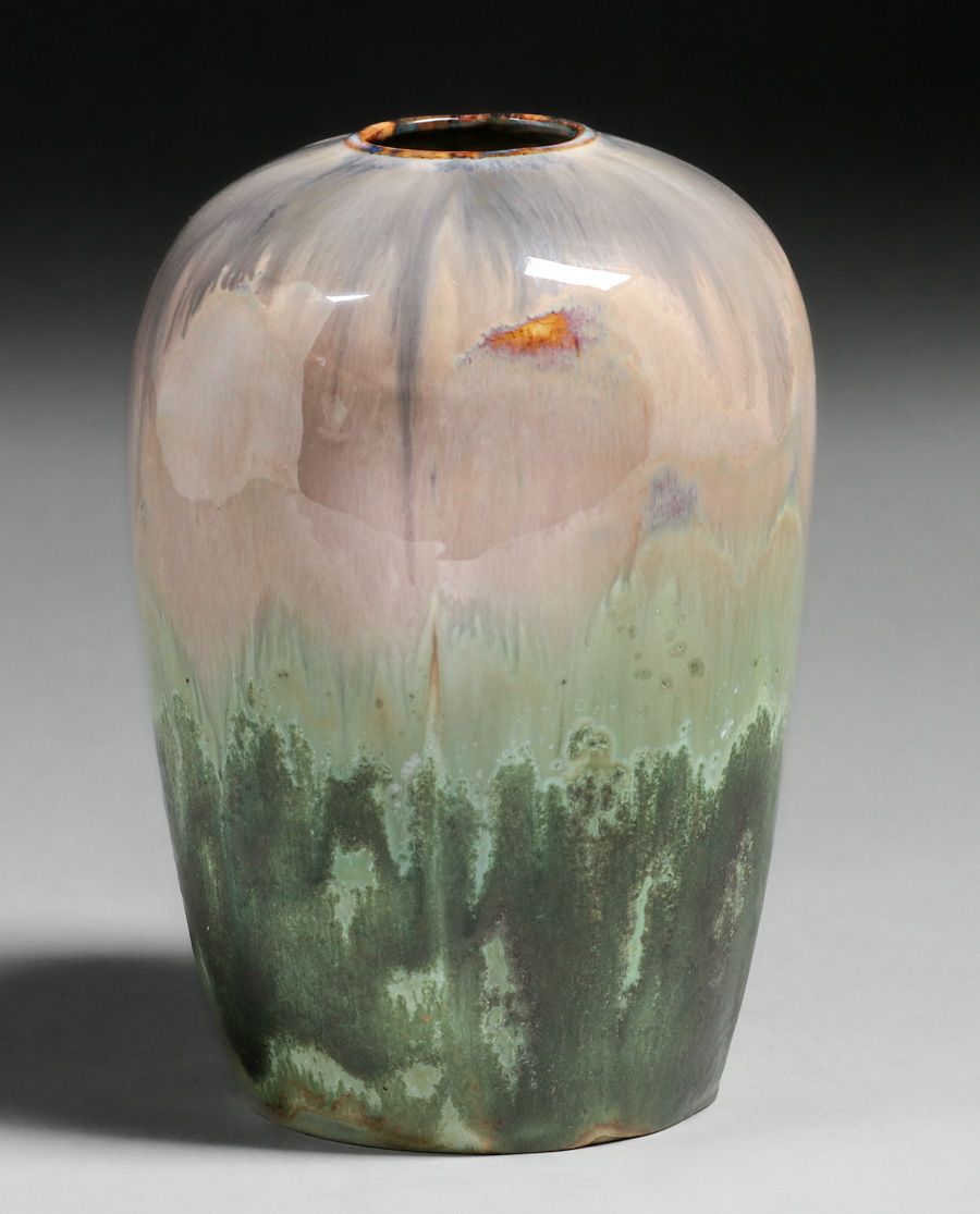 - Prang Fulper Pottery Leopardskin Rounded Vase c1910
