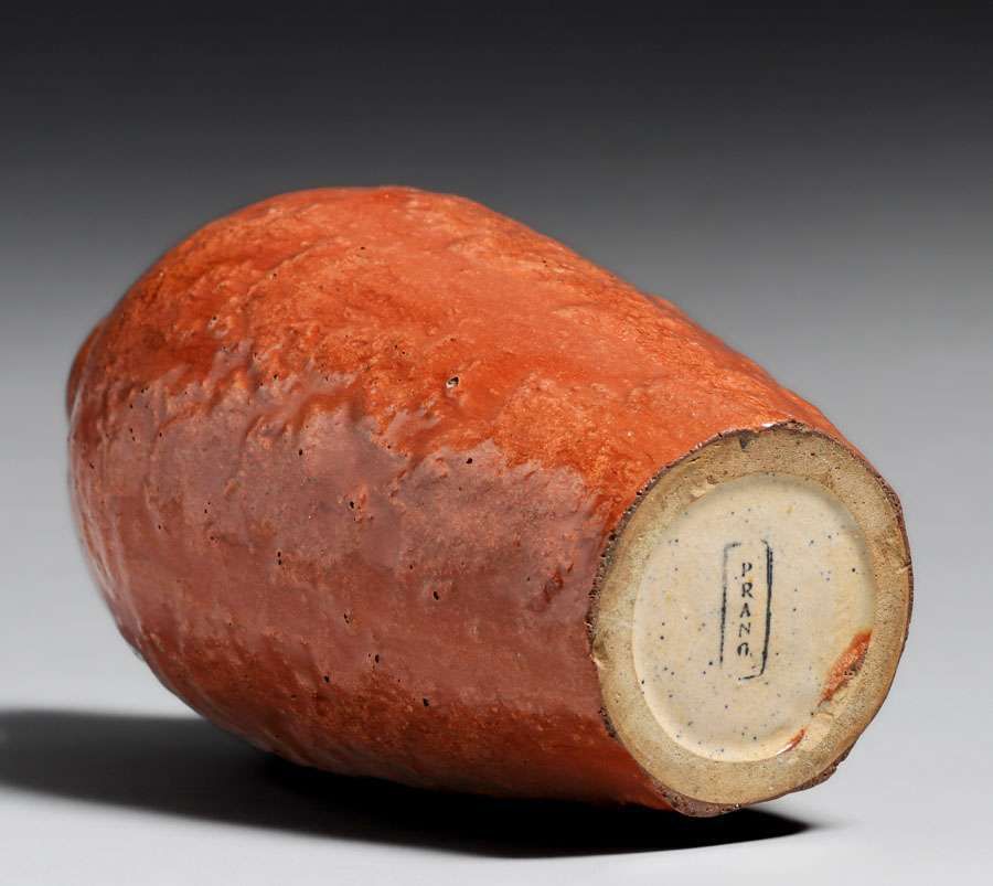 Prang Fulper Pottery Vase c1910. Unusual mahogany glaze. Signed with early Prang mark. Perfect condition. 9"h x 4"d SOLD
