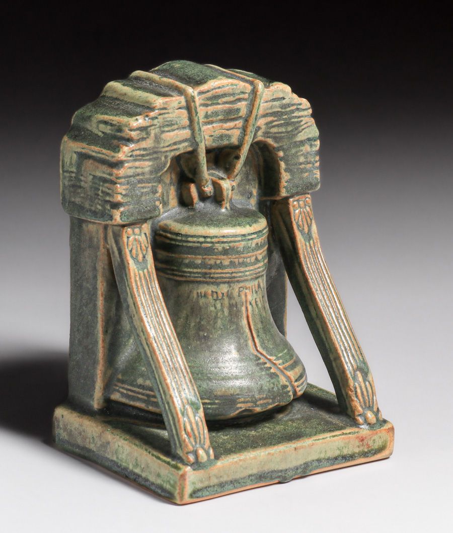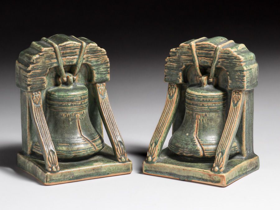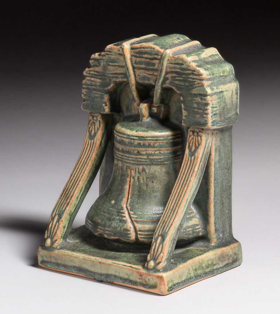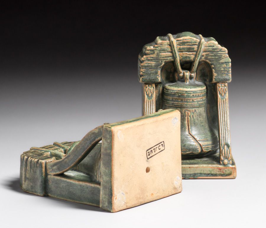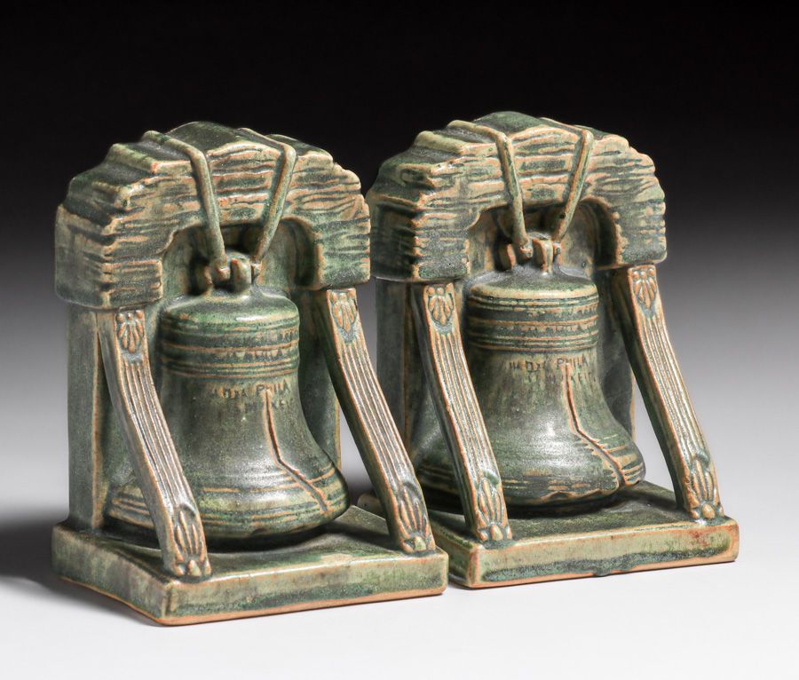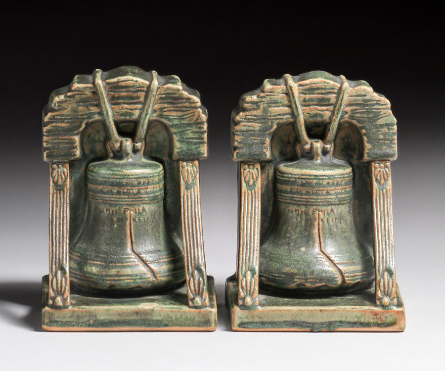 - Rare Fulper Pottery Liberty Bell Bookends c1910s