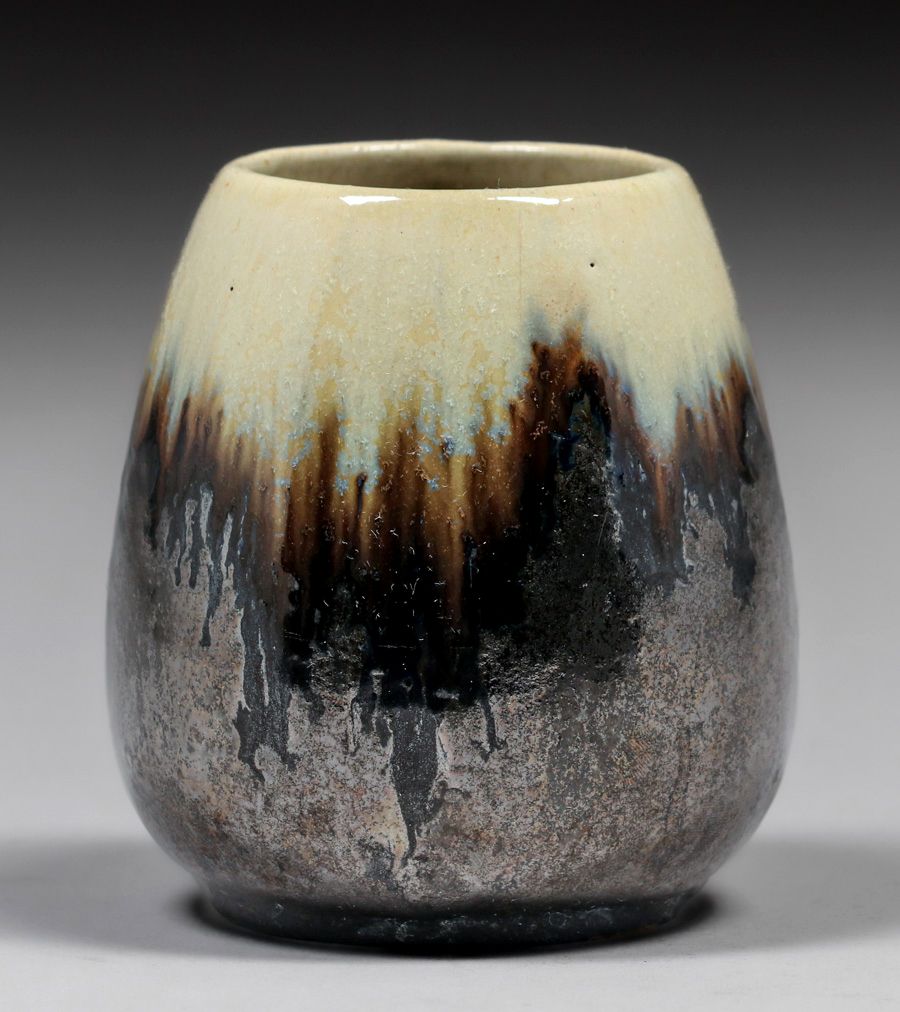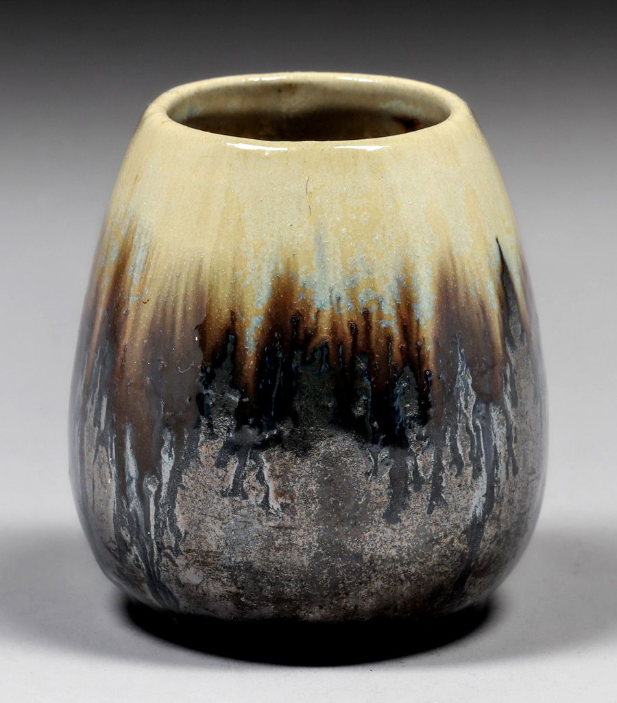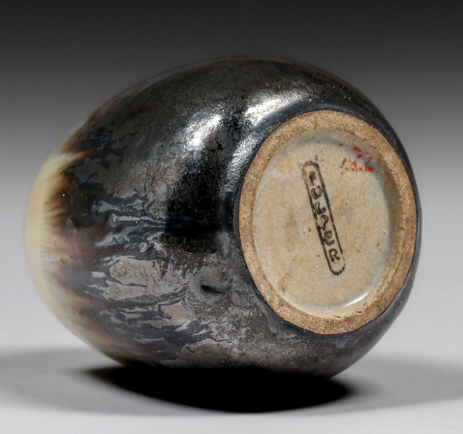 Small Fulper Pottery Mirror Black & Ivory Vase c1910s. Signed. Perfect condition. 3.5"h x 3.25"d SOLD