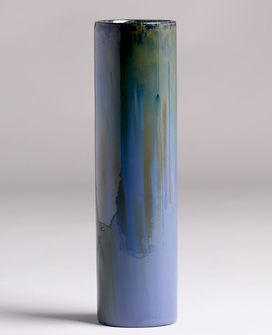 - Tall Fulper Pottery Cylinder Vase 13"h