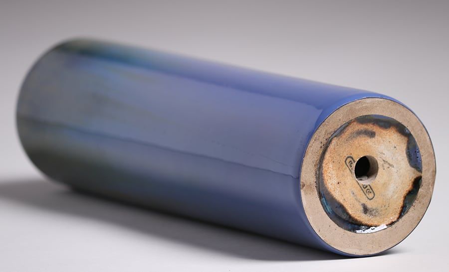 Tall Fulper Pottery cylinder vase. Signed. Drilled, otherwise perfect condition. 13"h x 4"d SOLD