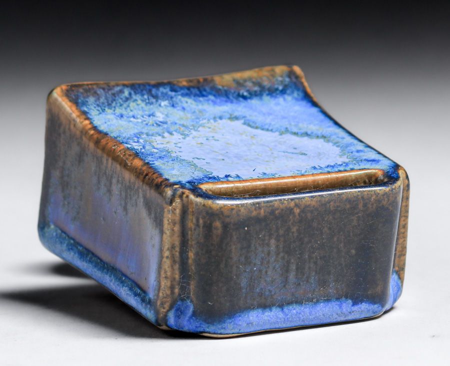 - Unusual Fulper Pottery Blue Crystalline Matchstick Holder c1910s