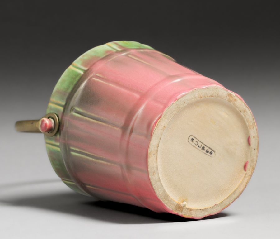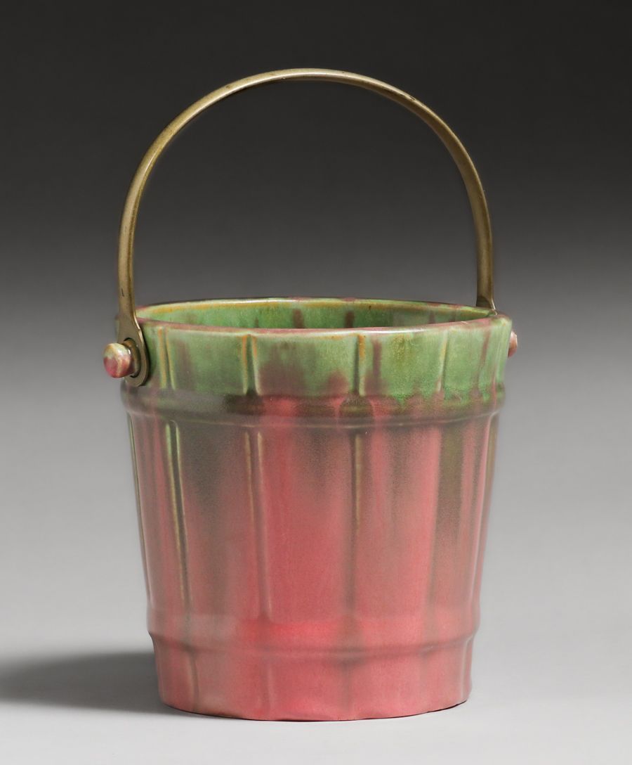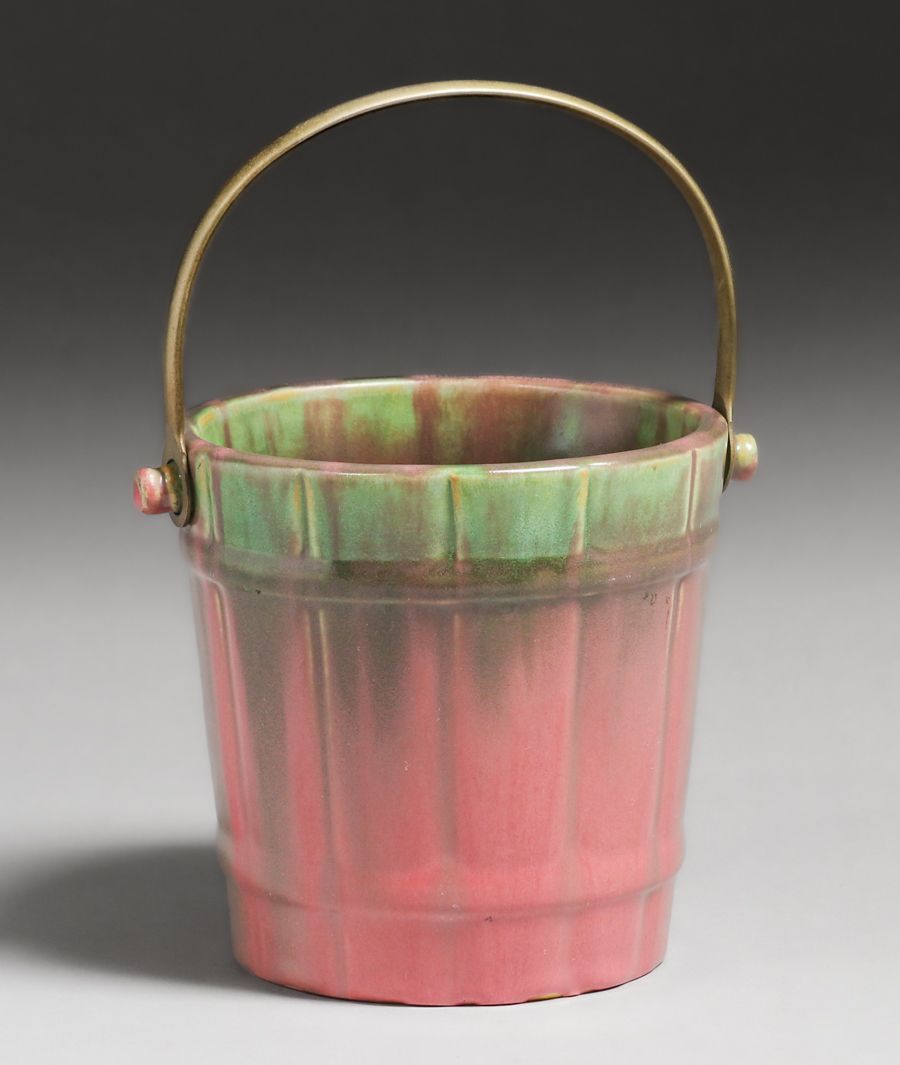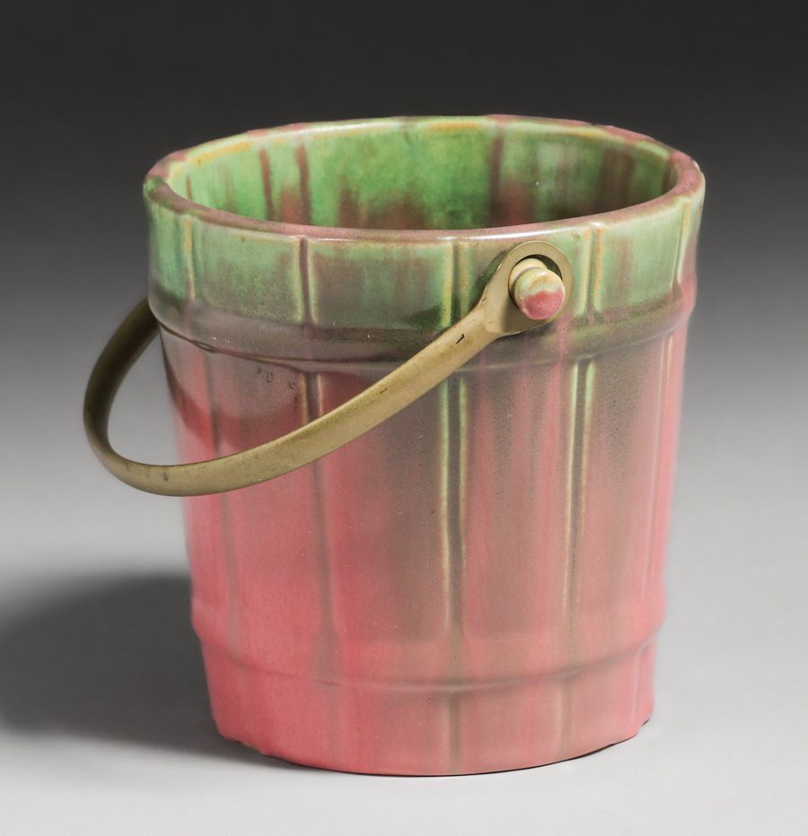 Unusual Fulper Pottery Bucket c1910s. Signed. Perfect condition. 8"h w/ handle. 5"h x 5"d SOLD