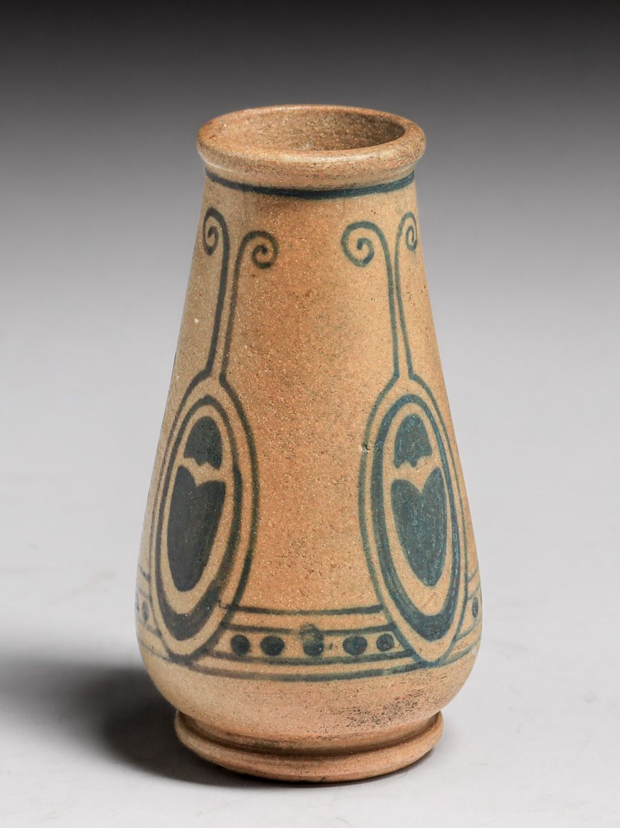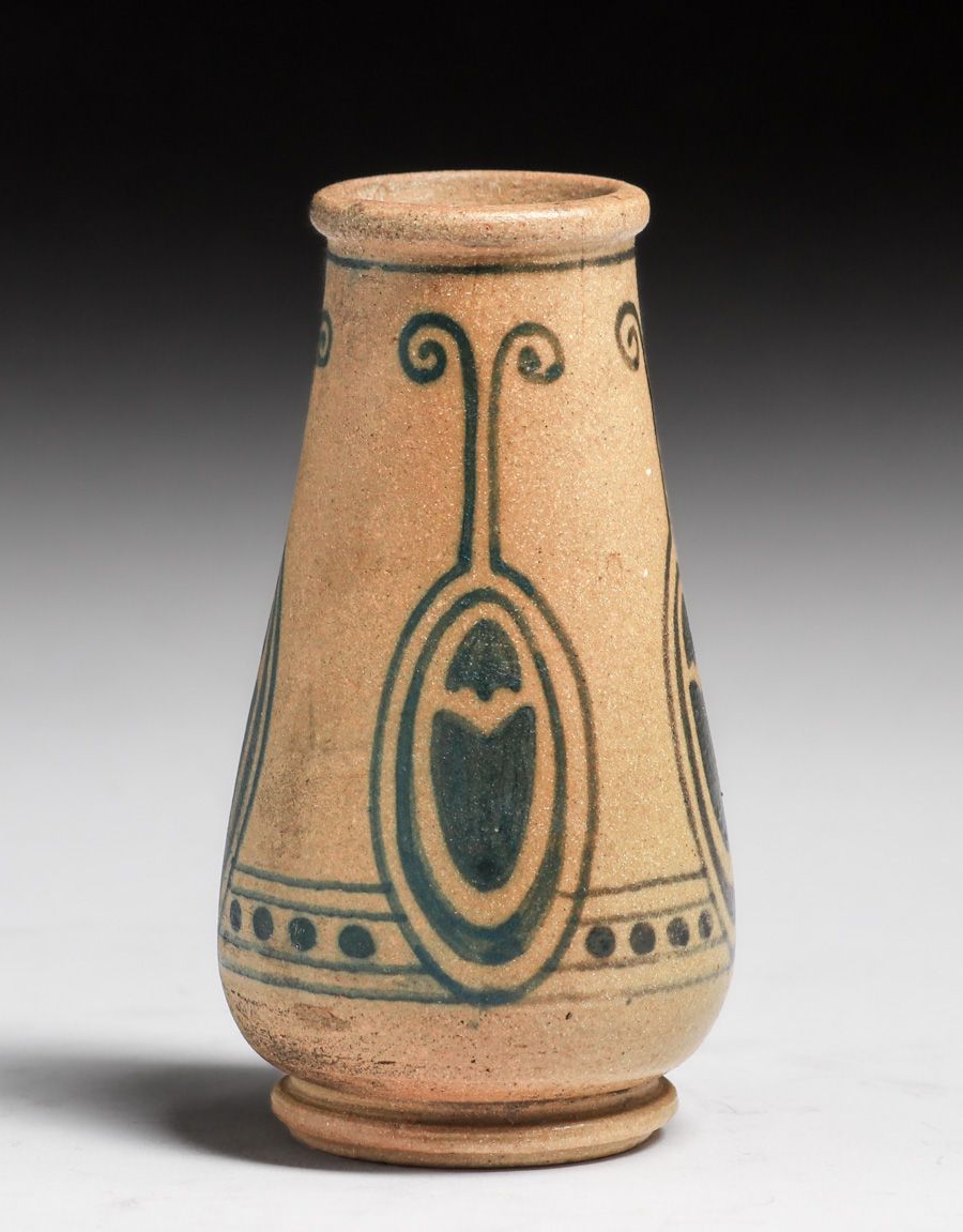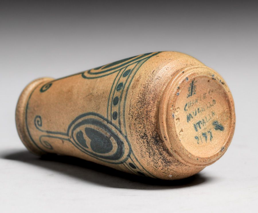 Galileo Chini (Florence, 1873-1956) Art Nouveau Salt Glazed Vase c1900s. Signed. Perfect condition. Chini was a prominent member of the Italian Liberty Style and taught at the Accademia di Belle Arti in Florence. 4"h x 2"d SOLD