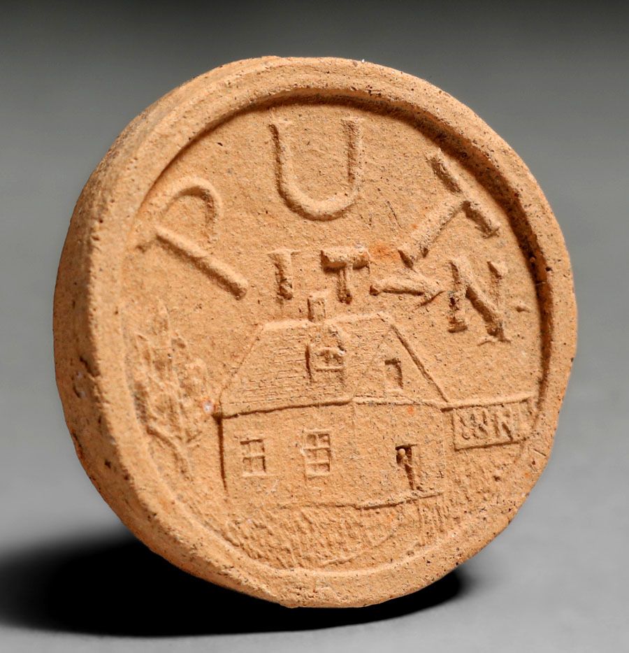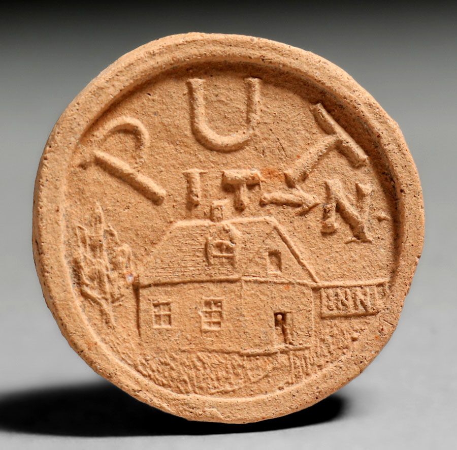 George Ohr Brothel Token c1895. Literature: George Ohr: The Greatest Art Potter on Earth, Hecht, pg. 57. Unsigned. Excellent condition. 1.25"d SOLD