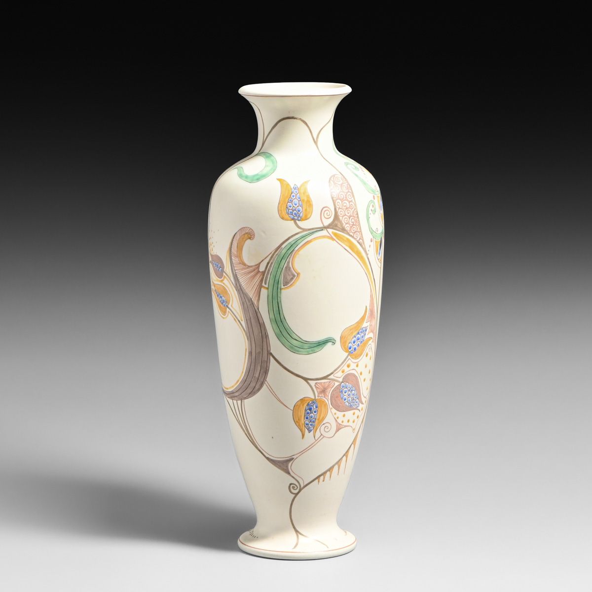 - Large Gouda Bird-of-Paradise Vase c1910s