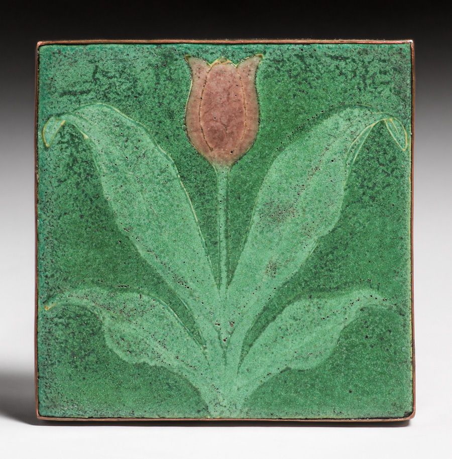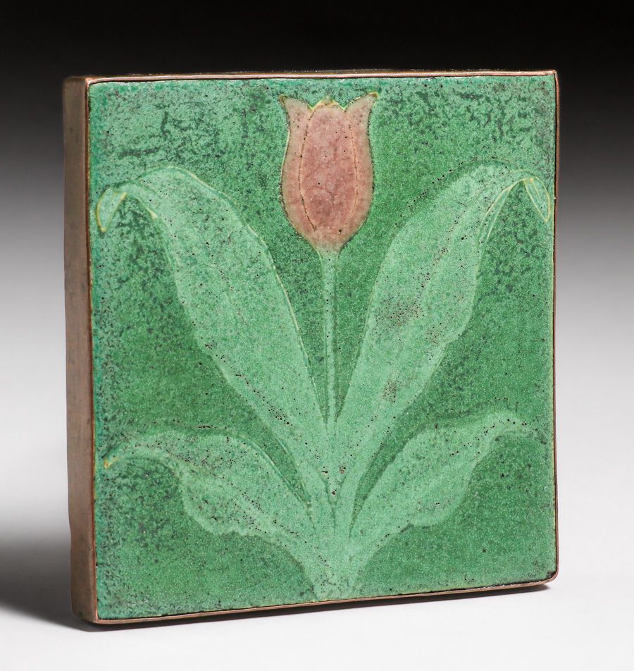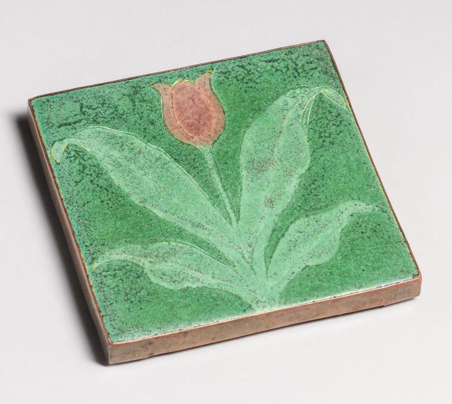 - Grueby Faience Copper Framed Three-Color Tulip Tile c1905