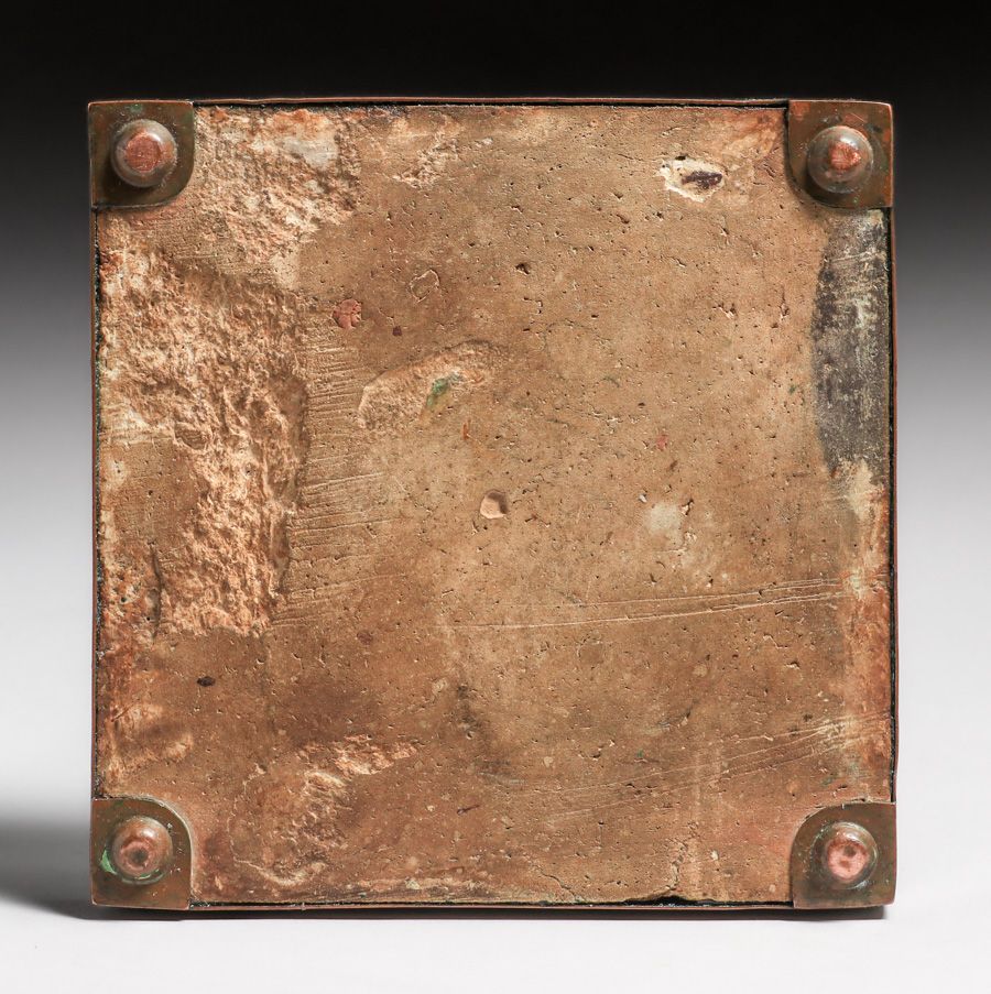 Grueby Faience Copper Framed Three-Color Tulip Tile c1905. Unsigned. Perfect condition. 6" x 6" $5500